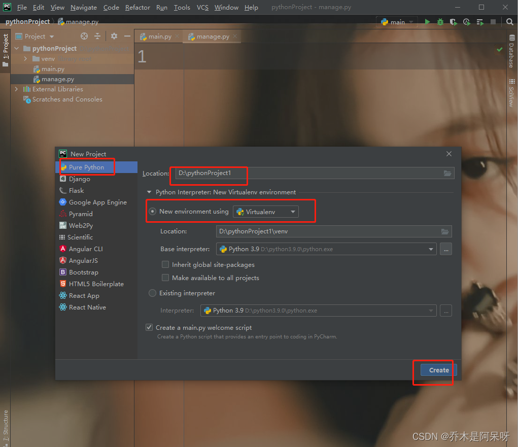 a.去新建一个项目,项目使用虚拟环境;