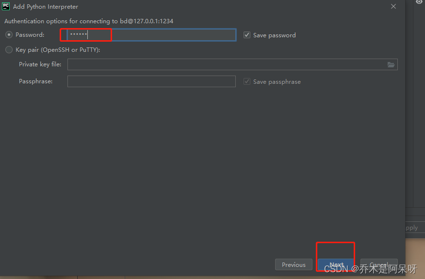 e.输入用户密码,再点击next;