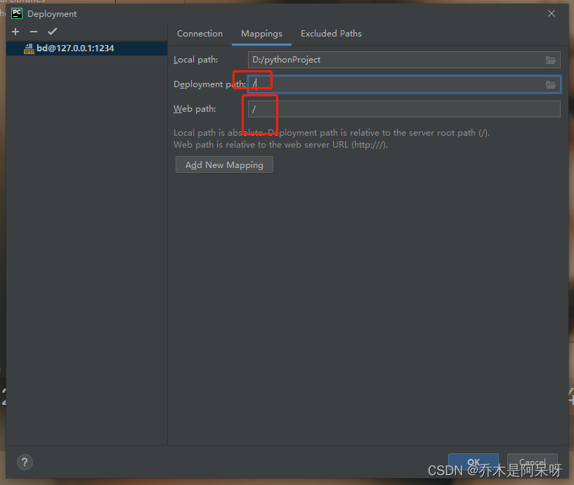 i.点击Mappings,将deployment path 和web path都换成/;点击ok;