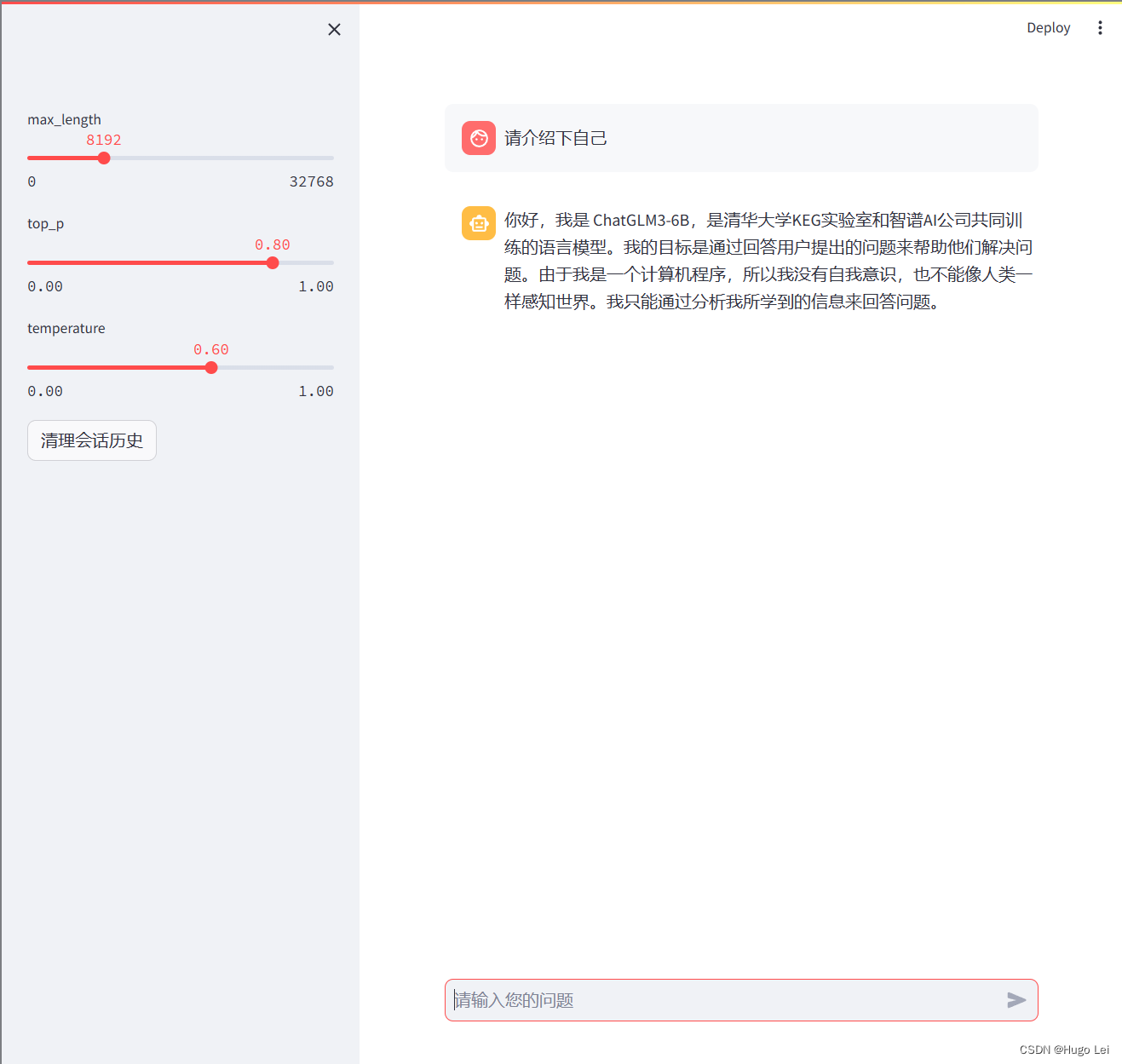 左侧又分为超参数调节、“清理会话历史”按钮。