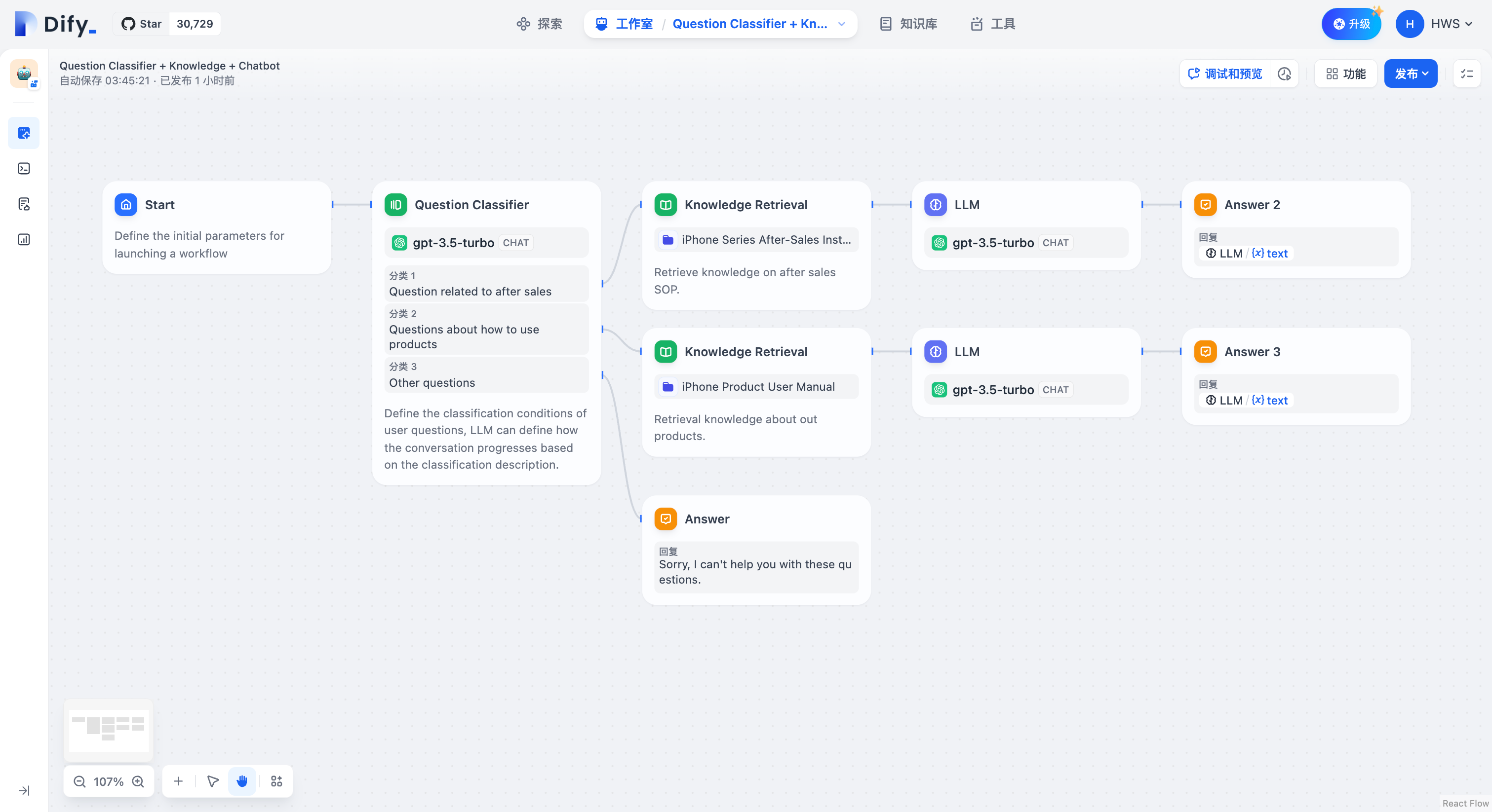- 选择分类对应的下游节点, 问题分类节点完成分类之后,可以根据分类与下游节点的关系选择后续的流程路径。