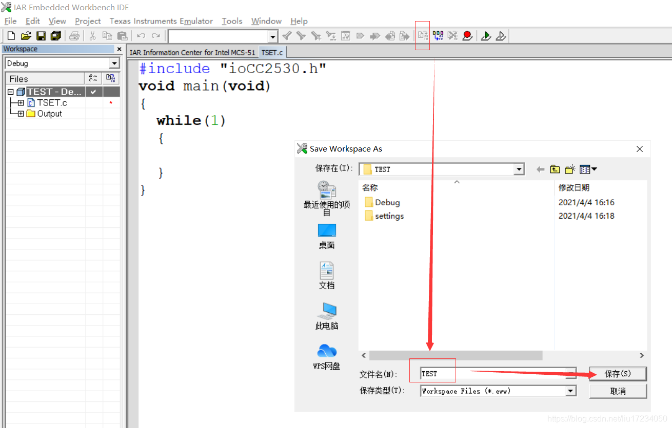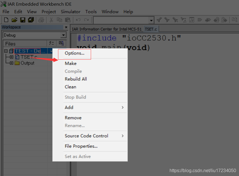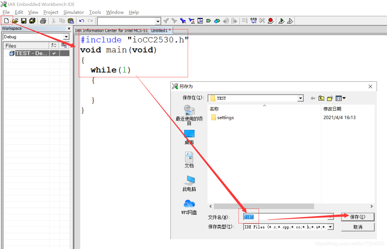 文章目录:开发的基本流程第一步:打开IAR第二步:点开project、点击create new project第三步:选择8051、点击emply project\点击ok第四步:选择目录新建一个文件夹、再取名、点击保存第五步:点击左上角新建一个c文件、写好程序后按ctrl+s保存到文件下并取名保存第六步:选择工作台右键点击add、添加.c文件第七步:开始配置环境、工作台右键选择options1.