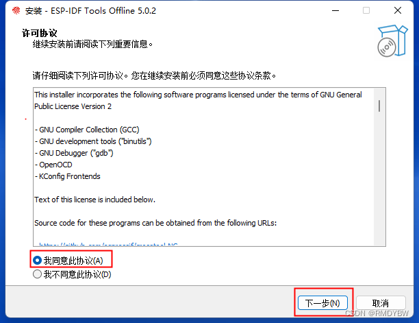 点击“esp-idf-tools-setup-offine-5.0.2.exe”进入安装引导