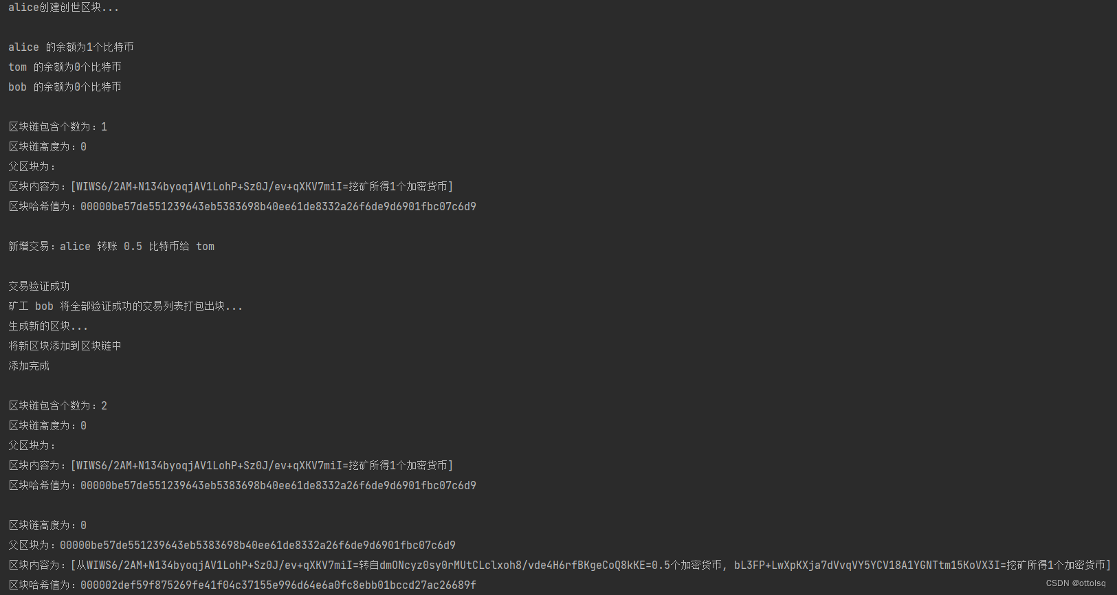 print(f"矿工 bob 将全部验证成功的交易列表打包出块...")