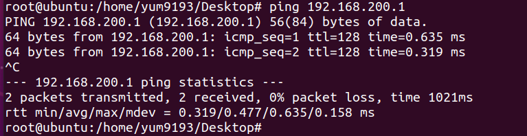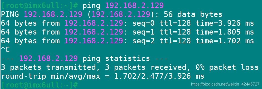 在开发板端尝试ping通windows,可以看到两者是互通的(若不通,查看windows防火墙是否关闭)