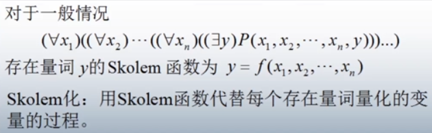 分两种情况:存在量词出现在一个或者多个全称量词辖域内;存在量词不出现在全称量词辖域内。