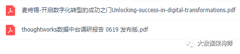 扩展阅读:《麦肯锡-开启数字化转型的成功之门》+《thoughtworks数据中台调研报告》下载方式:关注本公众号“大数据架构师”,后台回复“20210306”即可下载。也可以加我微信:shirenpengwh,咱私聊。