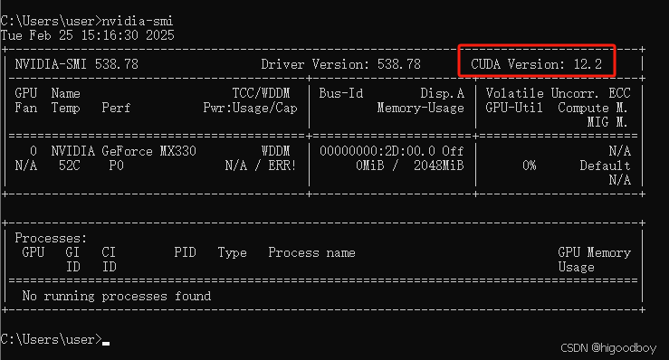 显示 cuda version:12.2 即是最大支持的cuda版本