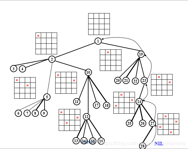 问题???这个意思就是深度搜索的时候根据最长对角线长度来决定先搜索谁,比如第一开始最长对角线是最左和最右,那么先从左边开始,搜索R11放皇后之后,在第二行中搜索R24放皇后具有最长的右上对角线,这样子去扩展???