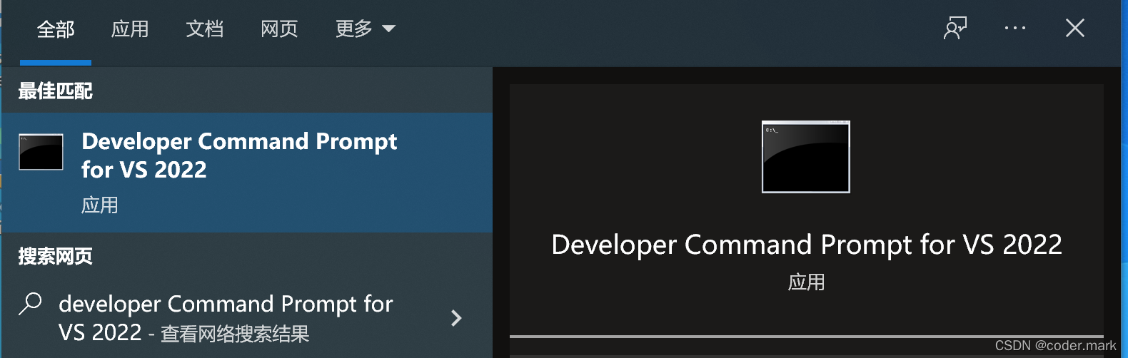 在windows菜单栏输入developer Command Prompt for VS 2022,找到这个命令行,回车。