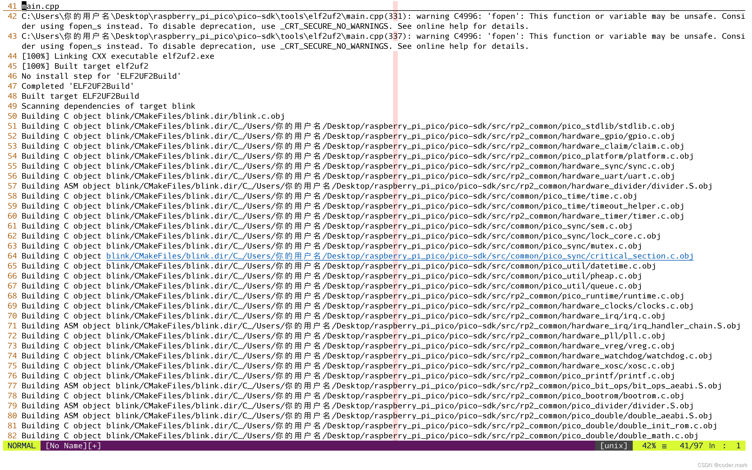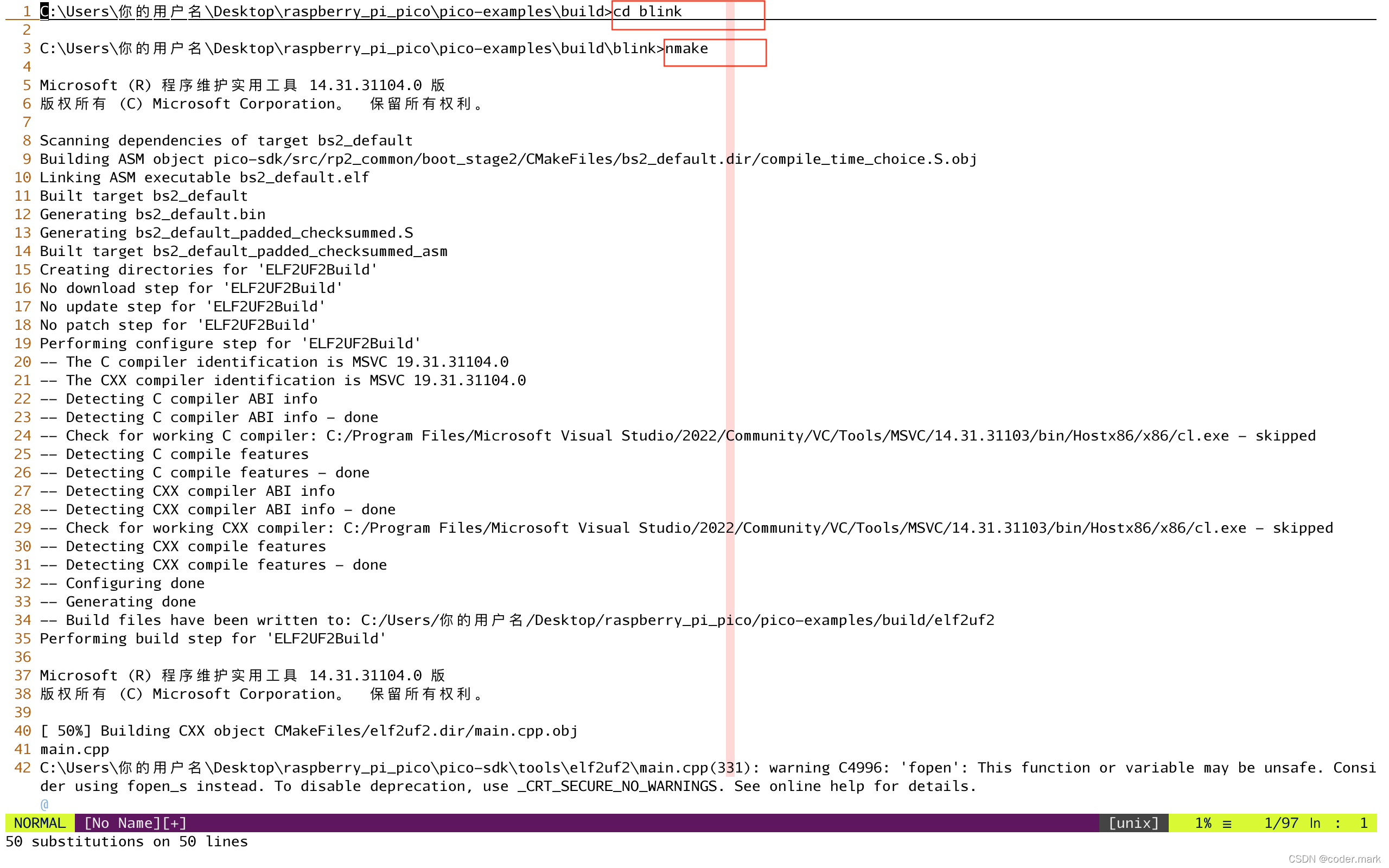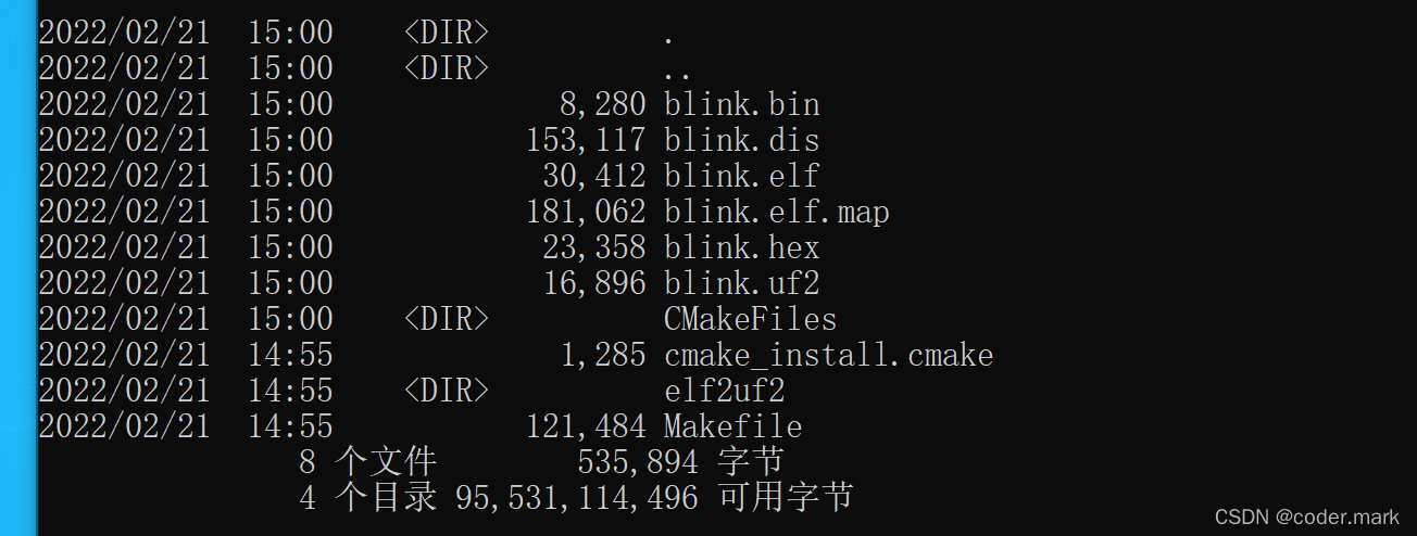 至此说明编译blink工程成功,并且在当前目录下有编译好的固件