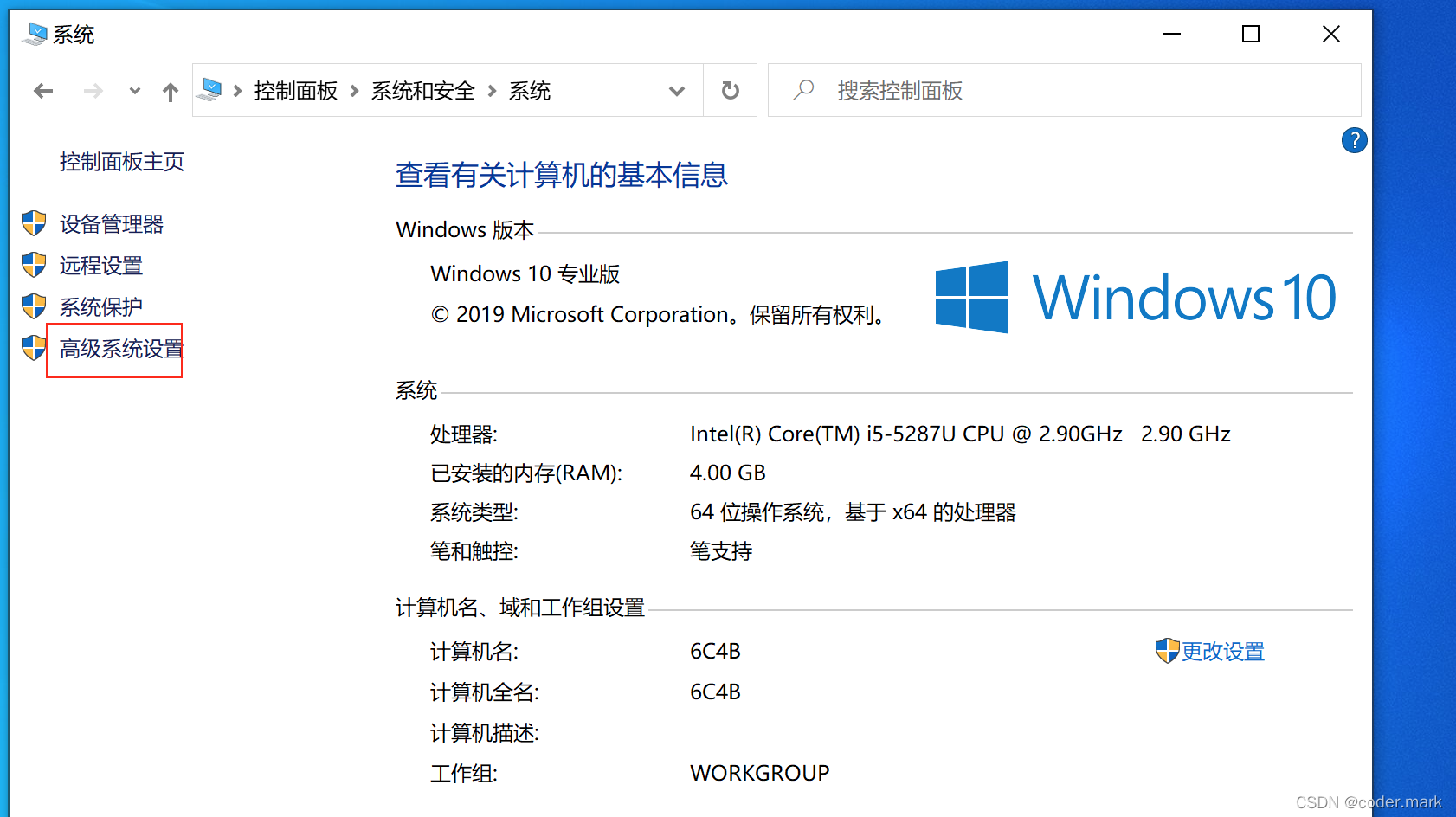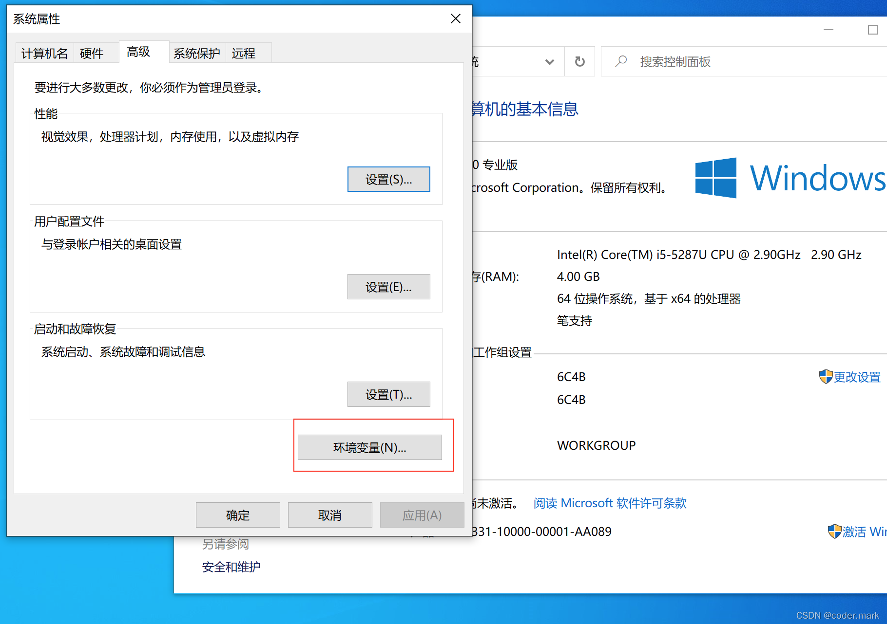 选择高级环境设置