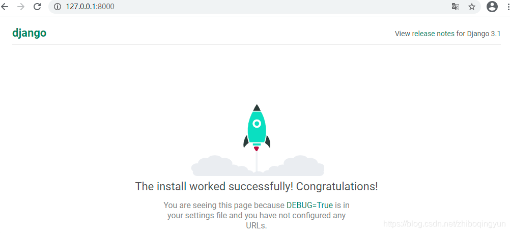 6、服务运行起来之后,可以在浏览器输入默认的访问地址127.0.0.1:8000