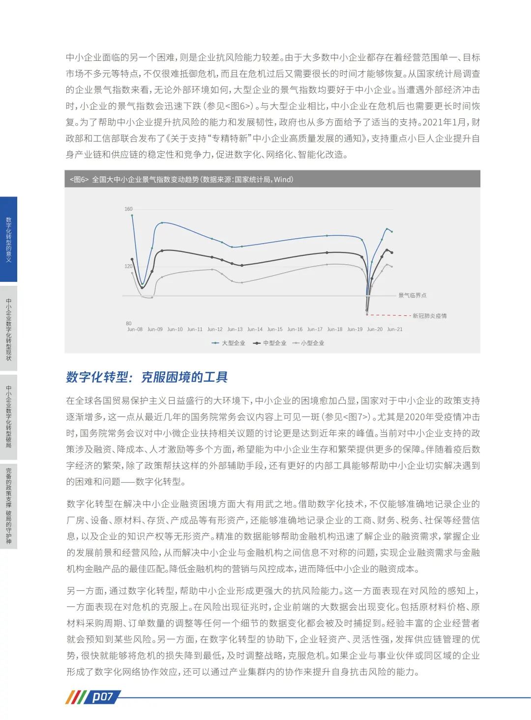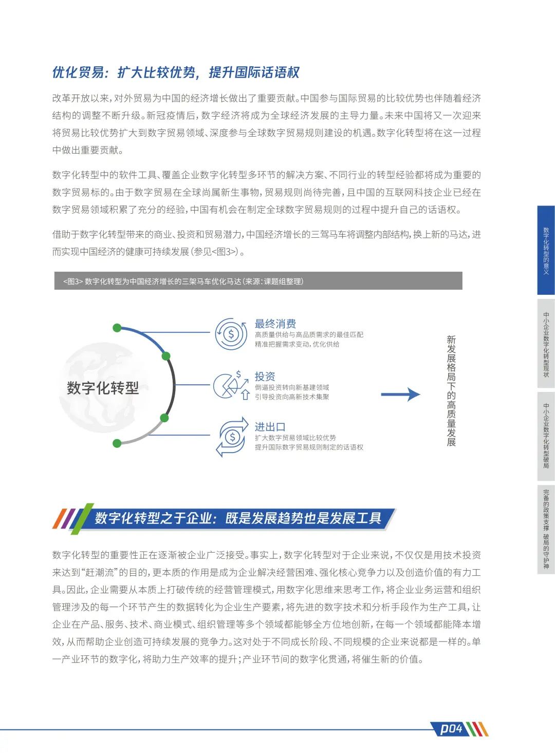 与大企业相比,中小企业普遍存在规模小、抗风险能力差、自有资金不足、社会融资困难等问题。中小企业的数字化转型如果只靠每个企业单打独斗,很难取得成功。需要更多的助手来帮忙。因此,需要与数字化转型相关联的各类主体搭建起服务中小企业数字化转型的生态伙伴体系,从技术、工具、人才、资金等多方面成为中小企业数字化转型的有力助手。数字化转型的目的是让数据成为提升企业盈利水平的生产要素。与数据打交道经验丰富的互联网科技企业要成为中小企业数字化转型的最得力助手,做好生态共建和产业共创,为中小企业的数字化转型连接更多的合作伙伴,用融合创新提供前沿技术,降低中小企业数字化转型门槛,丰富中小企业数字化转型的工具箱。