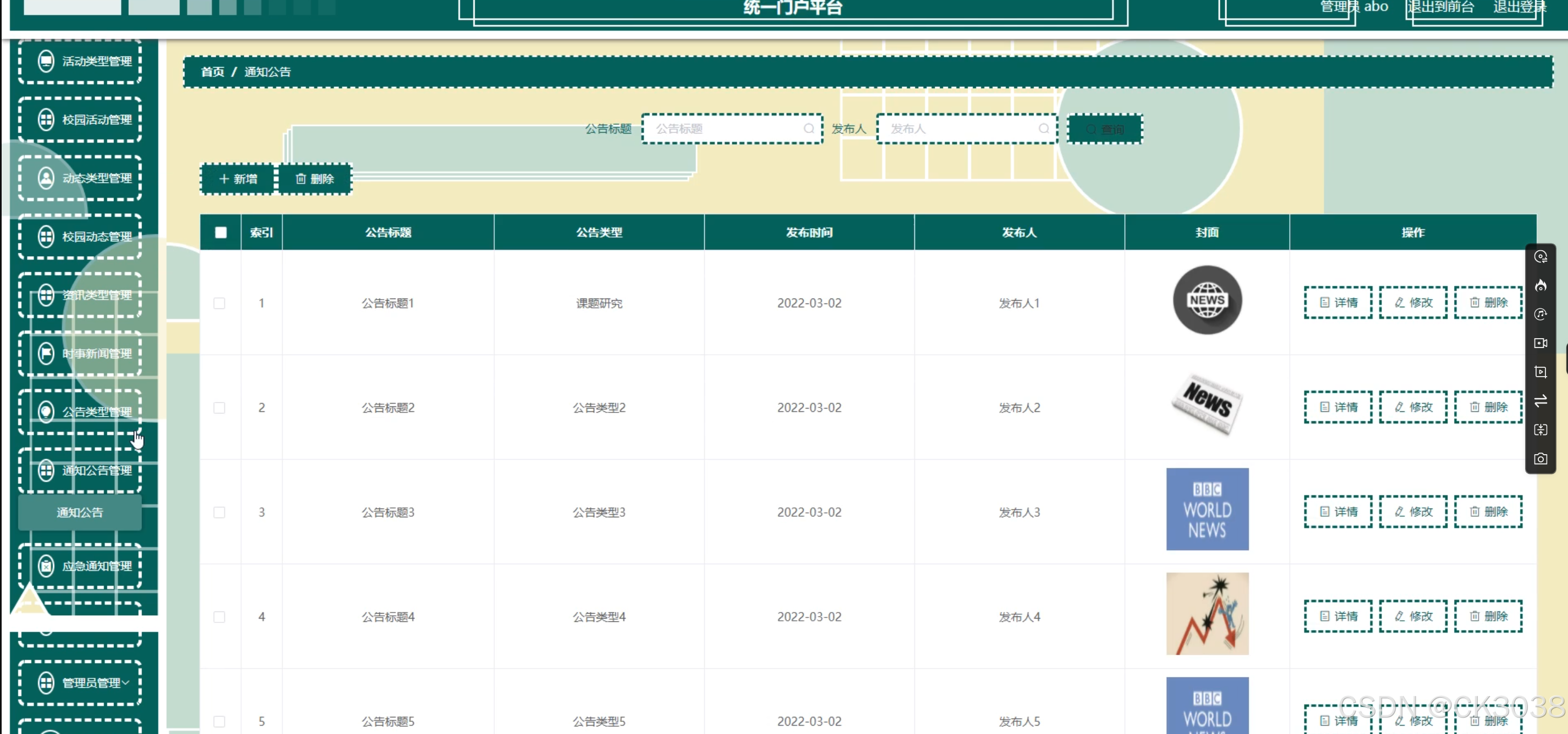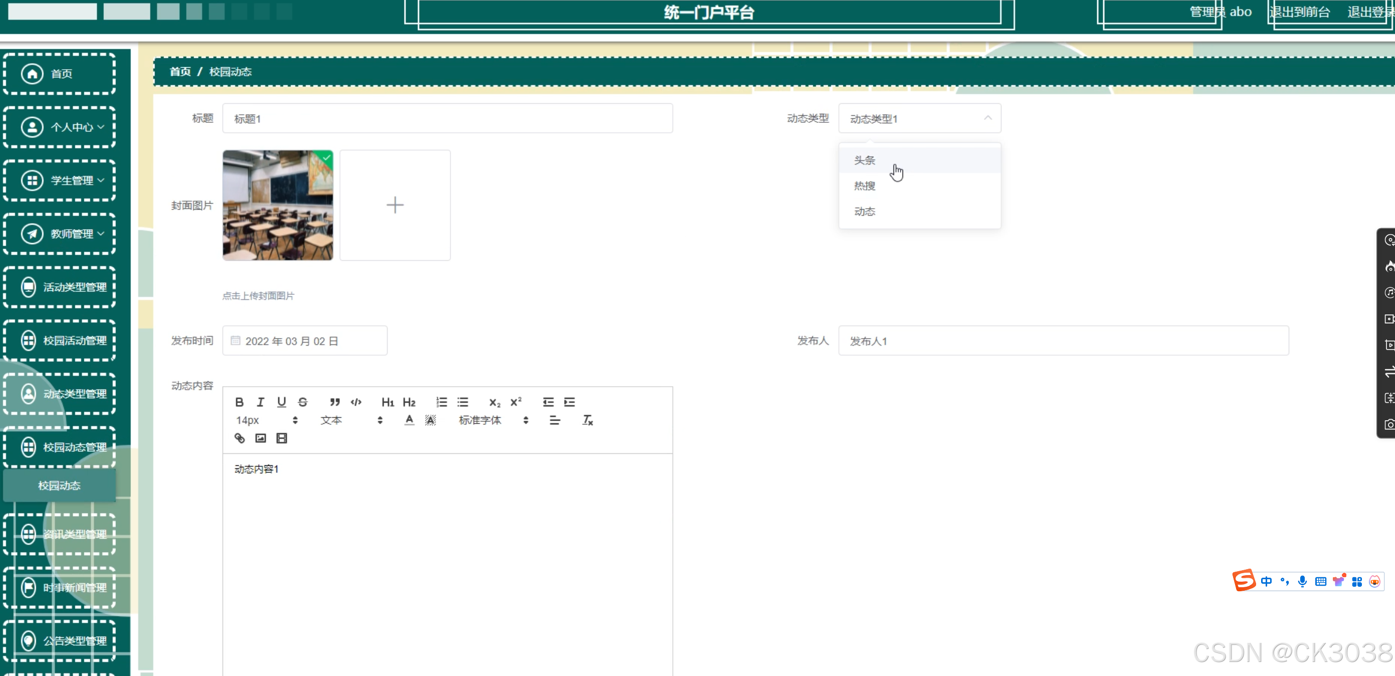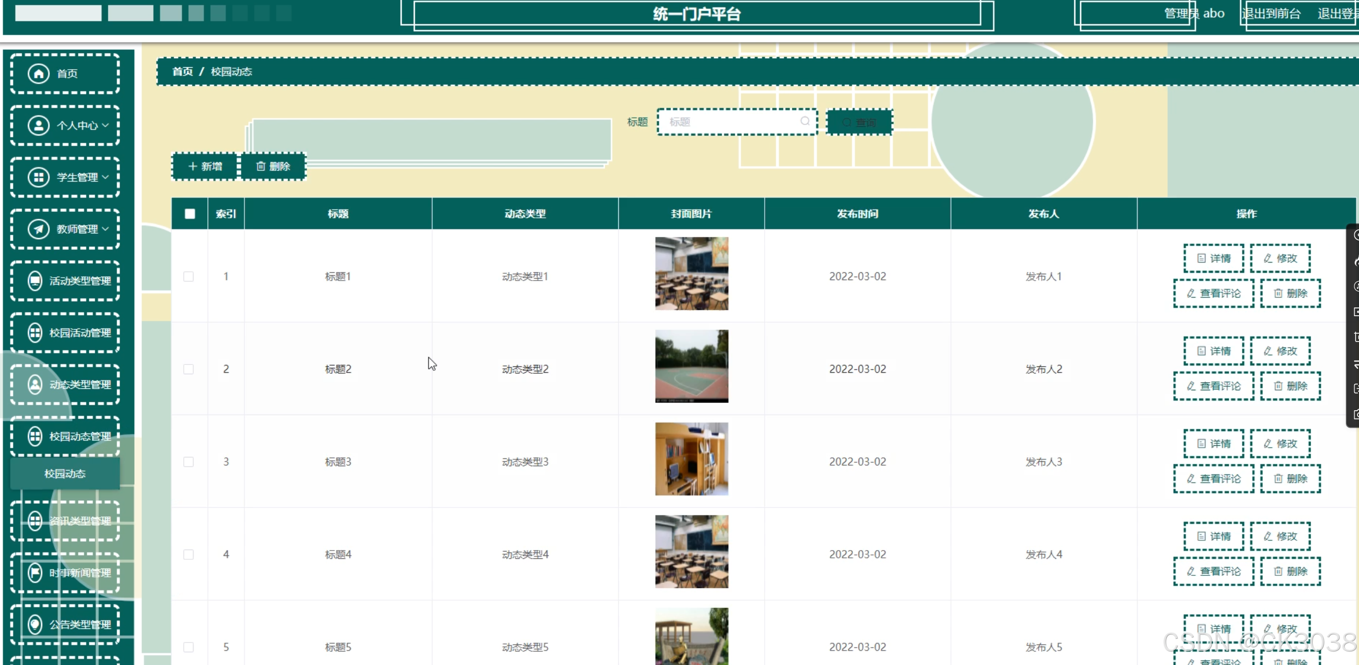 学生,教师,活动类型,校园活动,动态类型,校园动态,资讯类型,时事新闻,公告类型,通知公告,应急通知,资讯推送