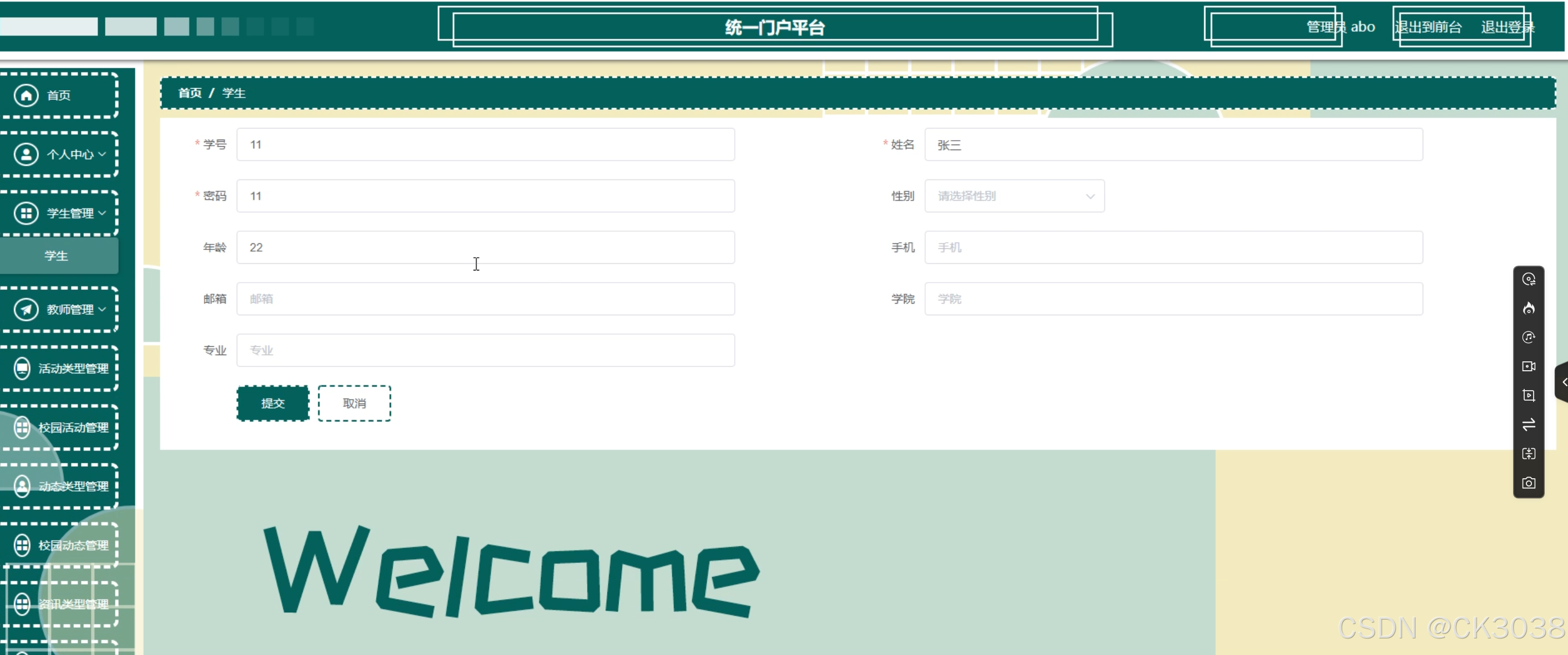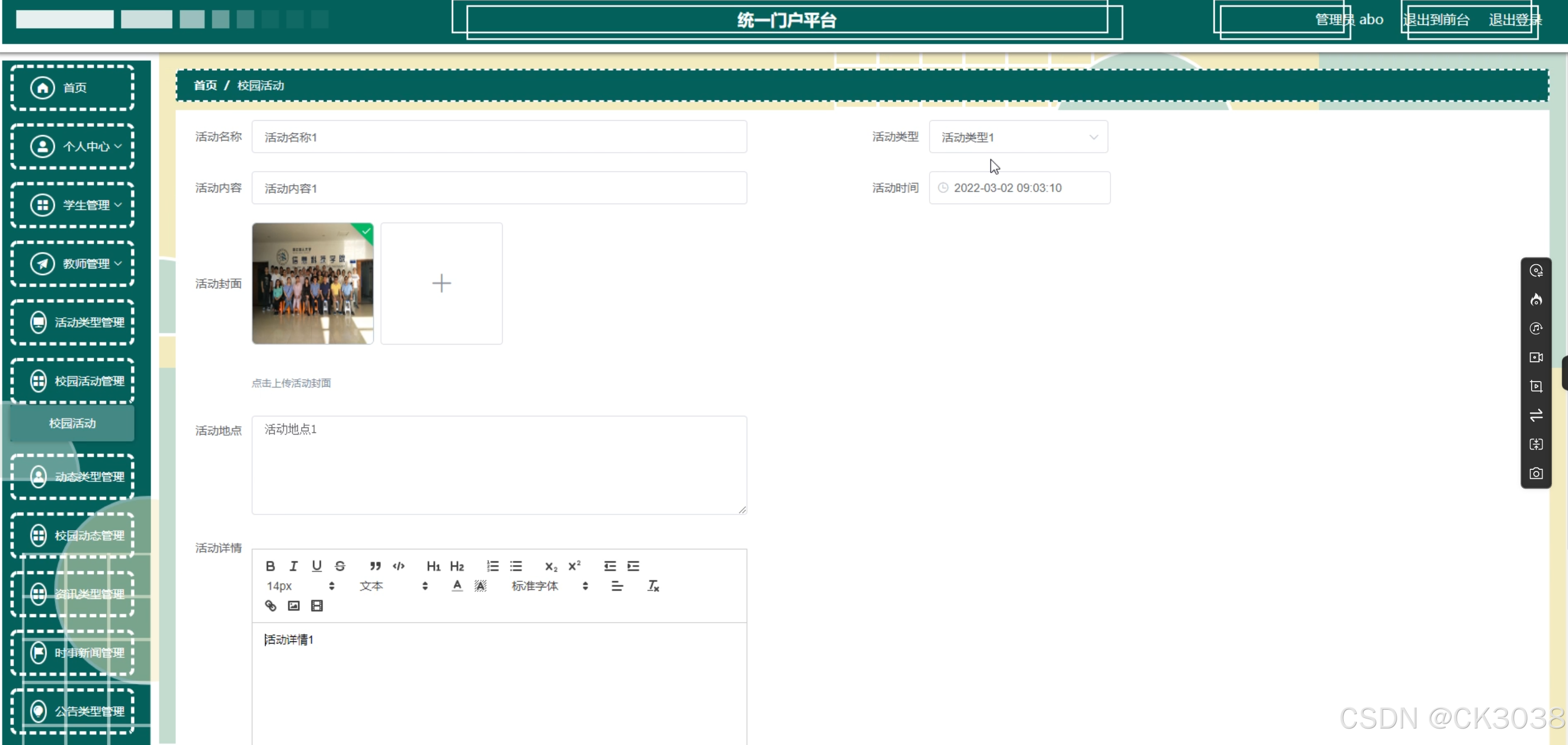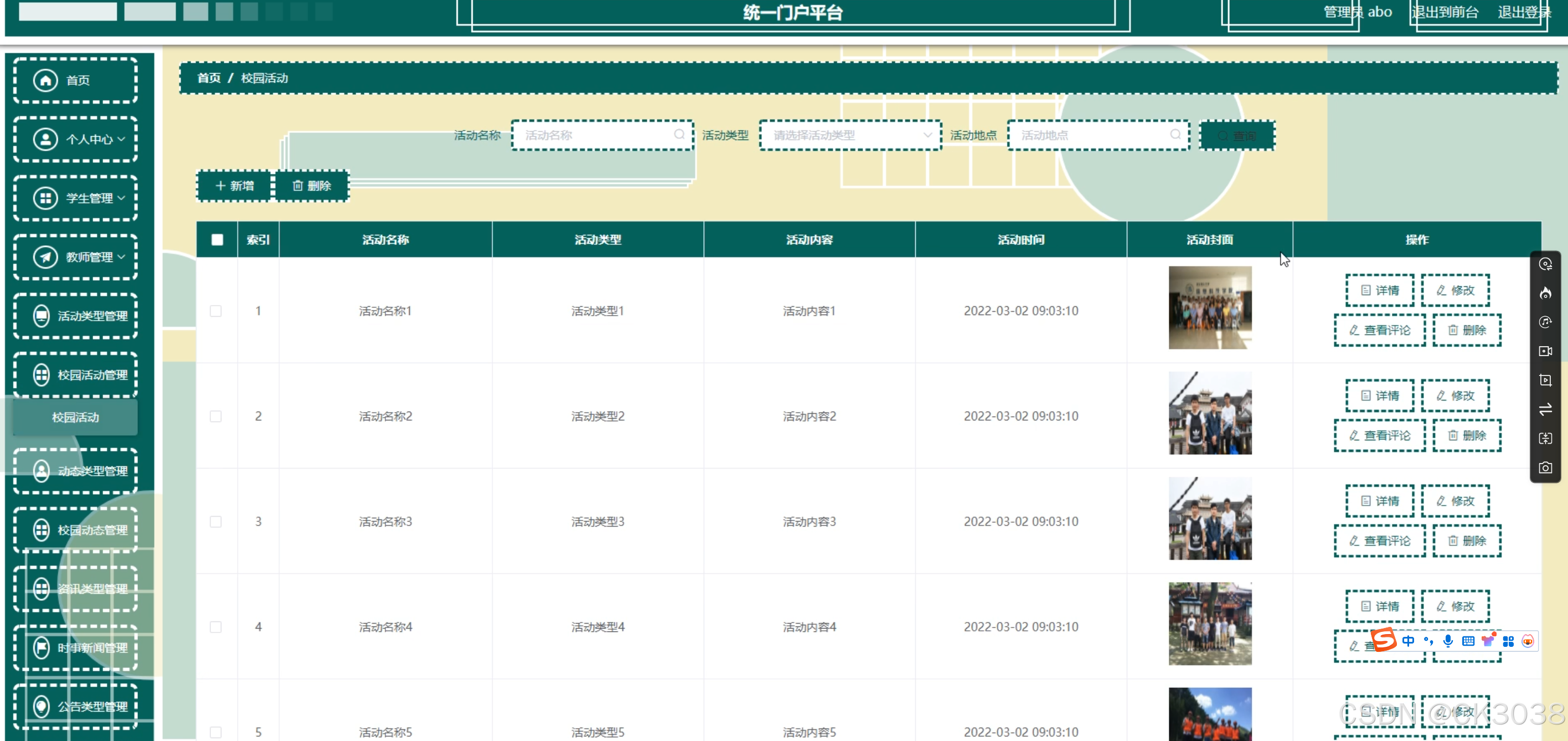 学生,教师,活动类型,校园活动,动态类型,校园动态,资讯类型,时事新闻,公告类型,通知公告,应急通知,资讯推送