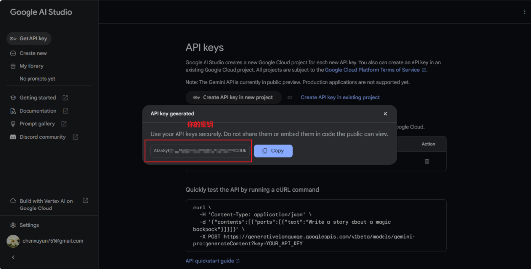 1.申请自己的API Key: https://makersuite.google.com/app/apikey