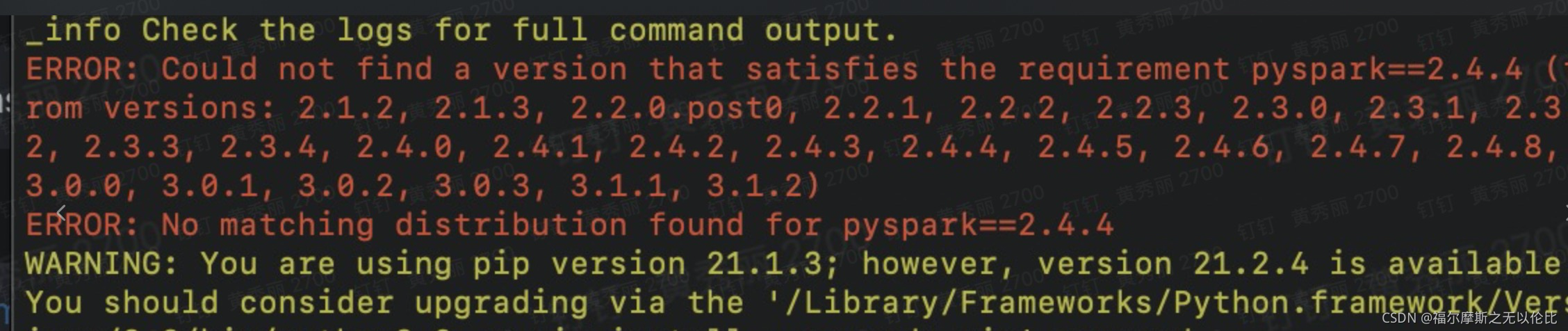 在安装pysaprk 的时候会报错找不到这个版本
