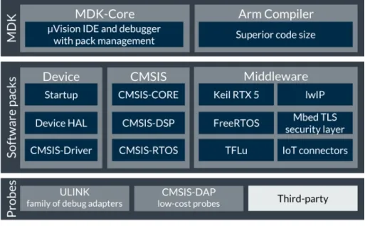 - 可用于基于Arm架构的微处理器的CMSIS标准框架。