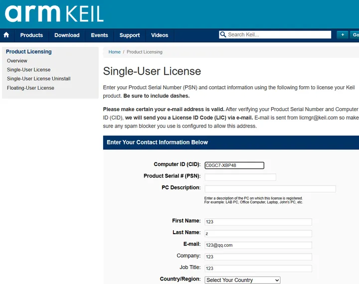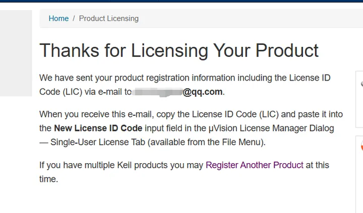 之后可以填写自己的邮箱地址,点击Send verification code去获取验证码,如图2-2-1所示。将复制的License粘贴到Keil里面的New License ID Code(LIC)下,然后点击Add LIC,如图2-5-11所示。如图2-4-5所示。点击后,网页就会变成此页面,表示激活成功,将发送验证码到你的邮箱,如图2-5-9所示。输入注册的账号和密码,然后点击Log in进