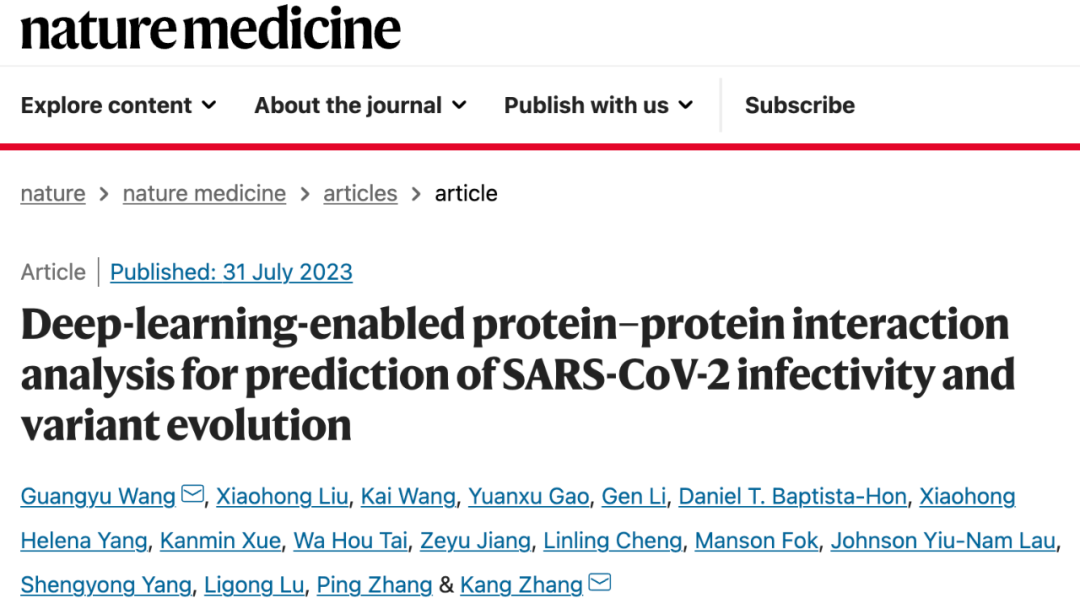 2023年7月,王光宇等人在国际顶尖医学期刊 Nature Medicine 发表论文【3】。该研究开发了一款人工智能(AI)预测系统——UniBind,该系统能预测 SARS-CoV-2 中有哪些突变株将对人类构成重大威胁,有助改变人们分析 COVID-19 以及潜在的其他传染病的模式和能力。