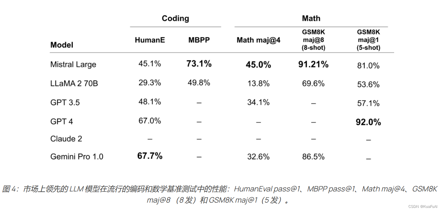 Mistral Large 不仅在语言方面展现出了卓越的才能,同时在数学和编程领域表现的逻辑思维能力也同样出色。