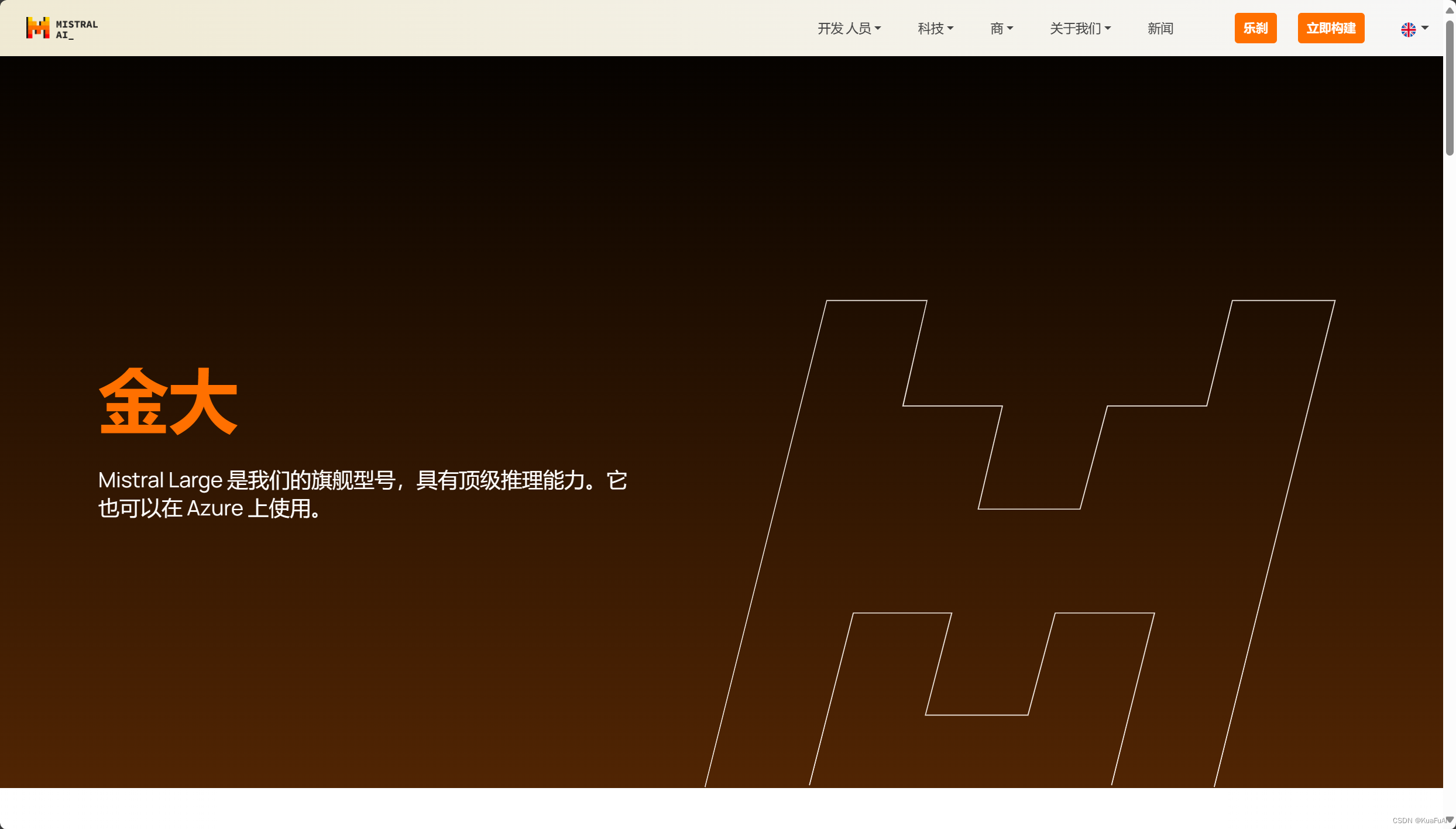 在其官网首页介绍“Mistral Large 是我们新的尖端文本生成模型。它达到顶级推理能力。它可用于复杂的多语言 推理任务,包括文本理解、转换和代码生成。”