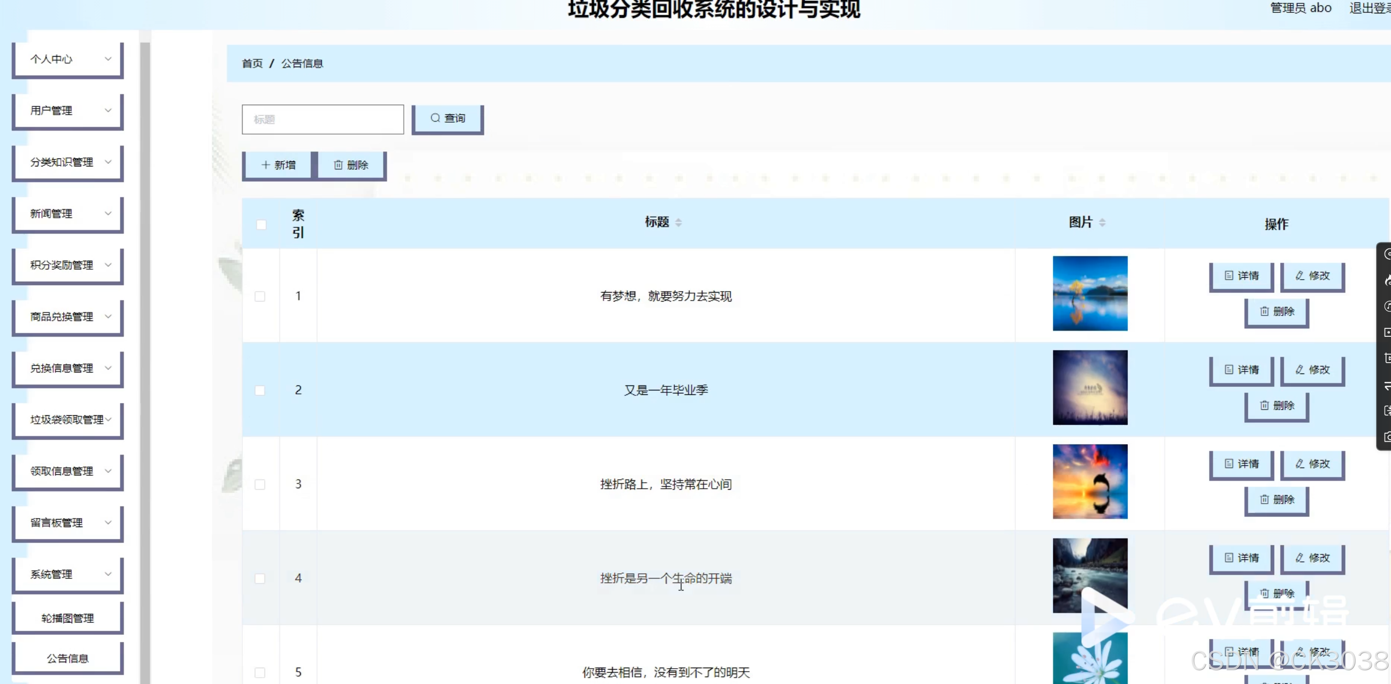 - 垃圾信息管理:记录垃圾的相关信息,包括垃圾种类、重量、来源等,为垃圾处理机构提供参考和决策依据。