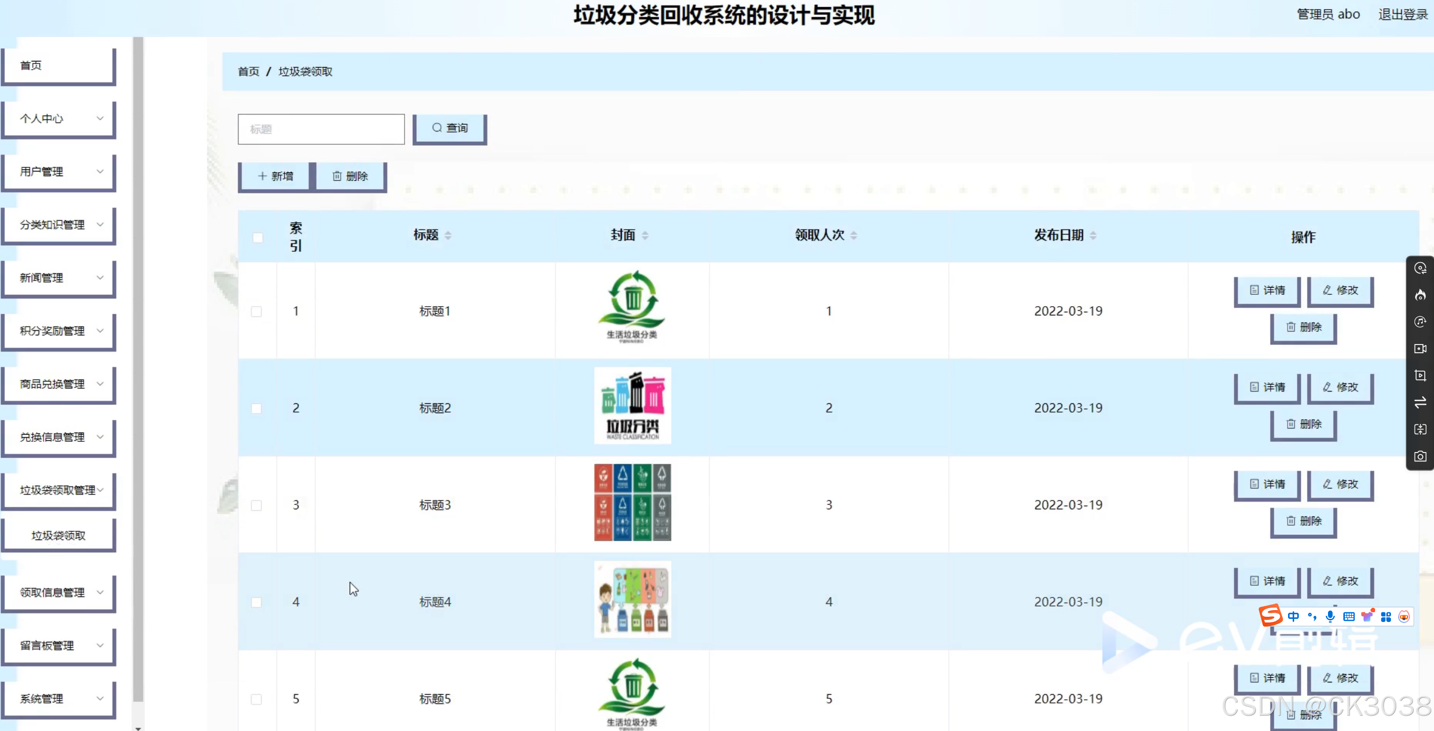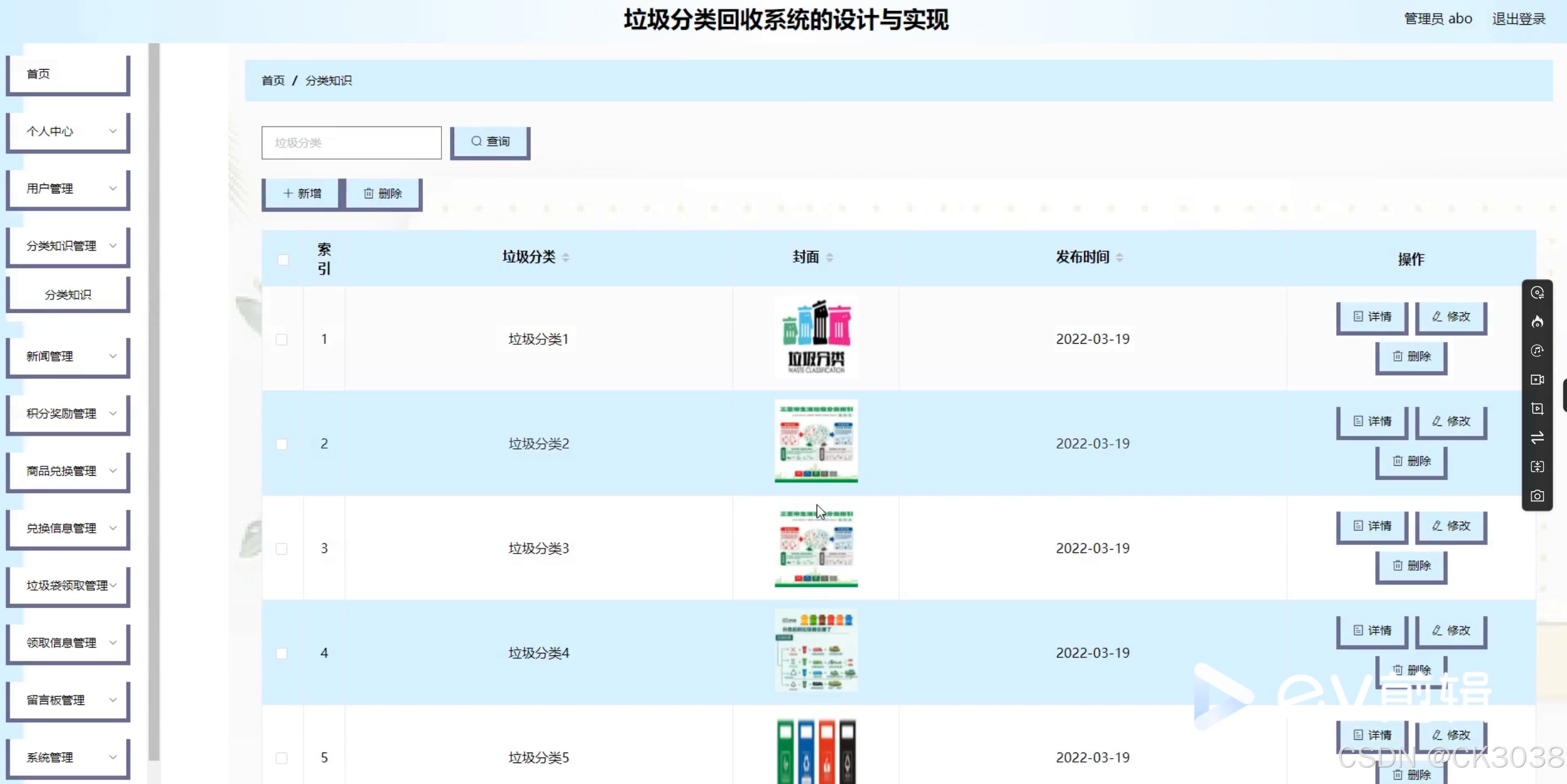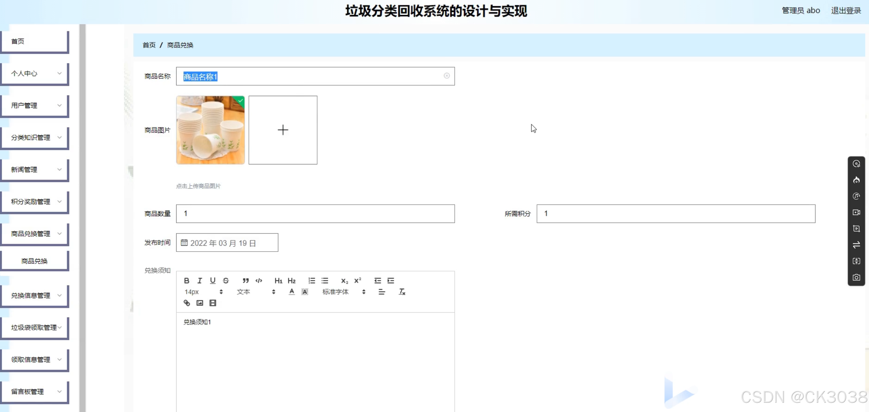用户,分类知识,新闻,积分奖励,商品兑换,兑换信息,垃圾袋领取,领取信息