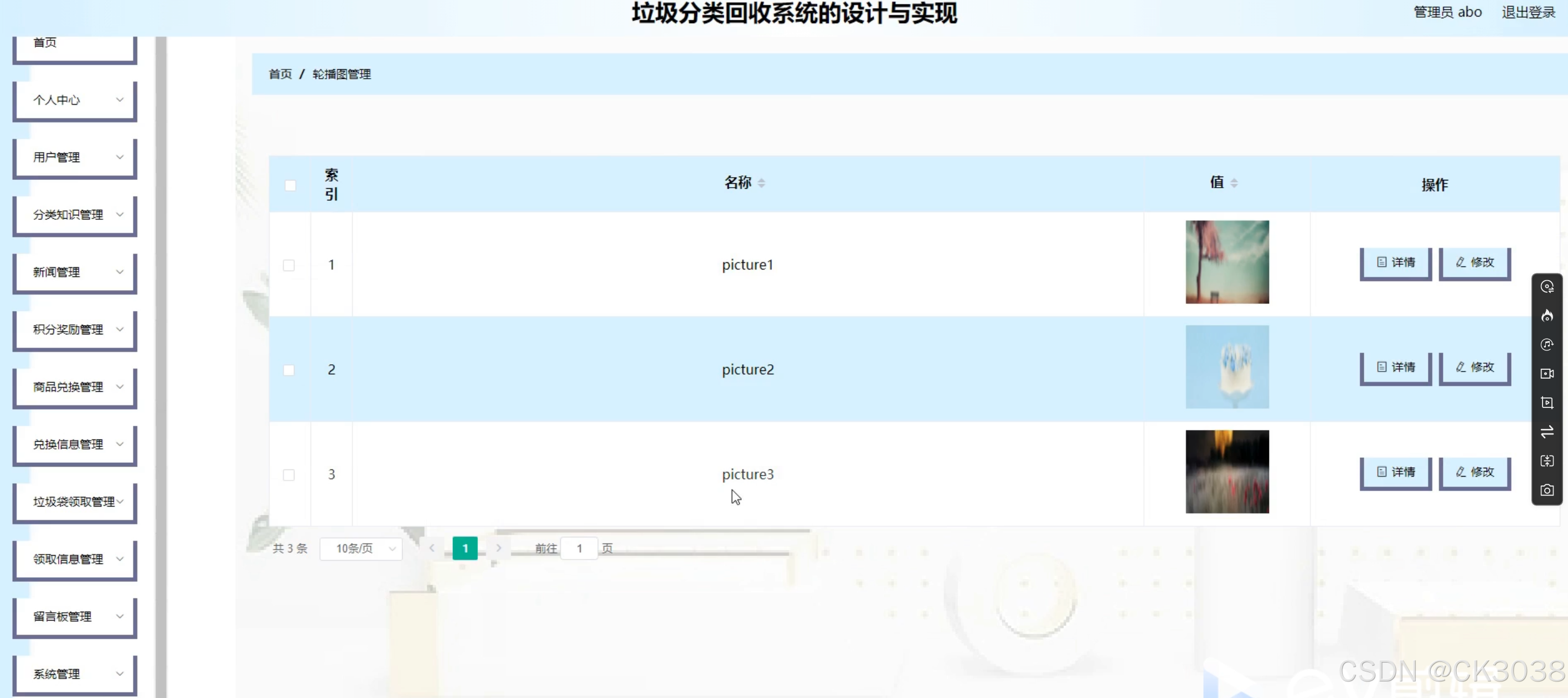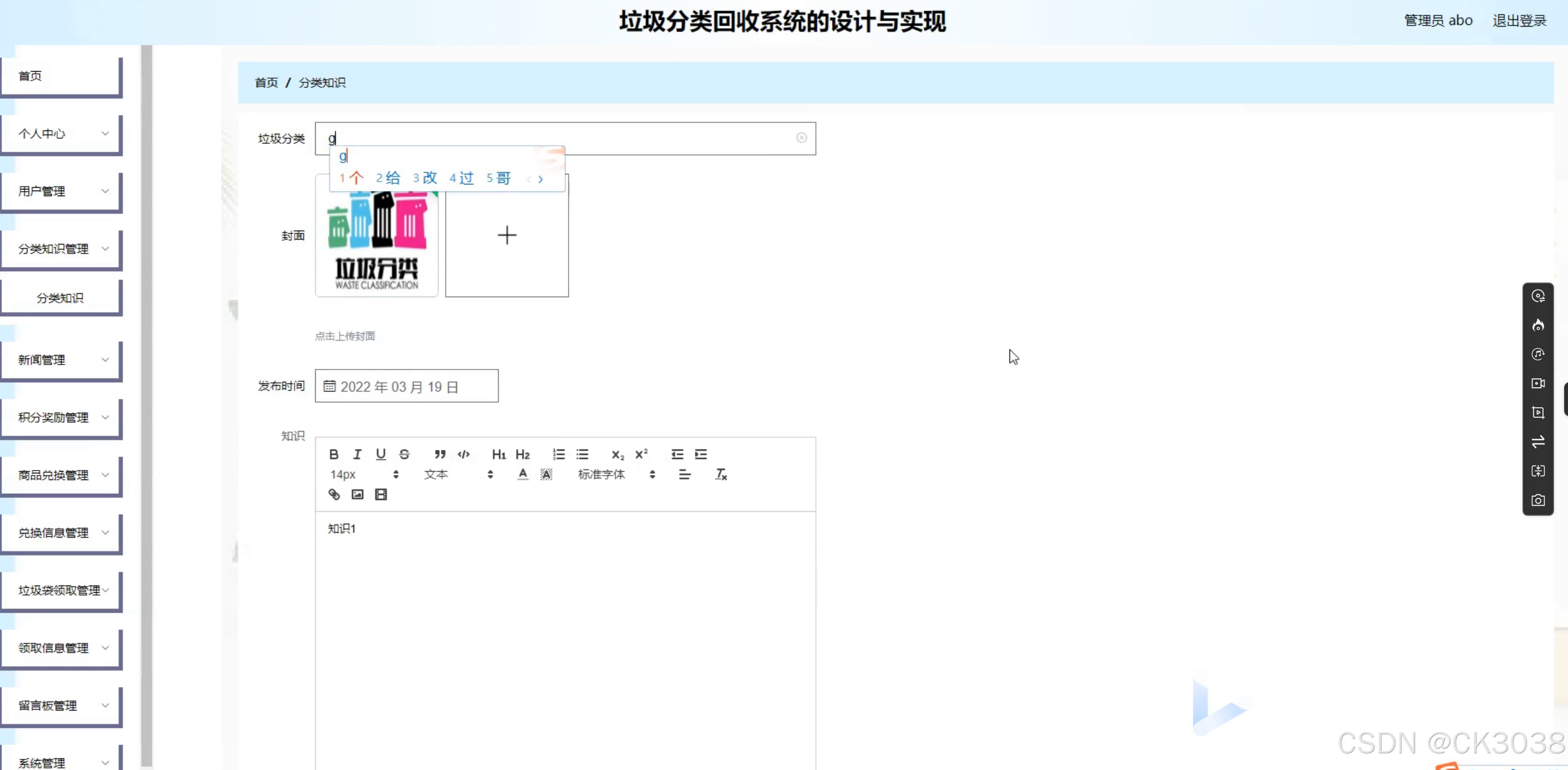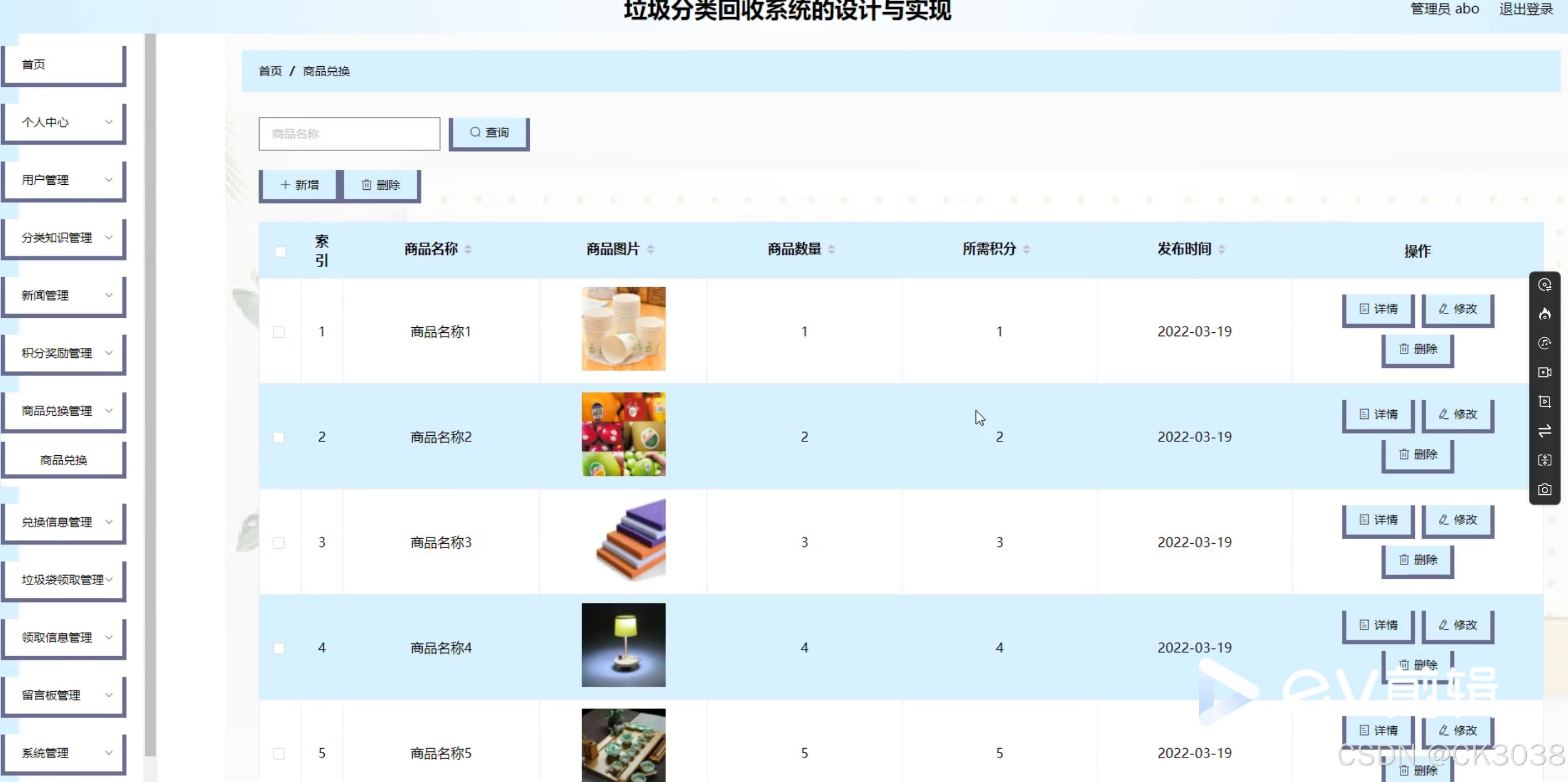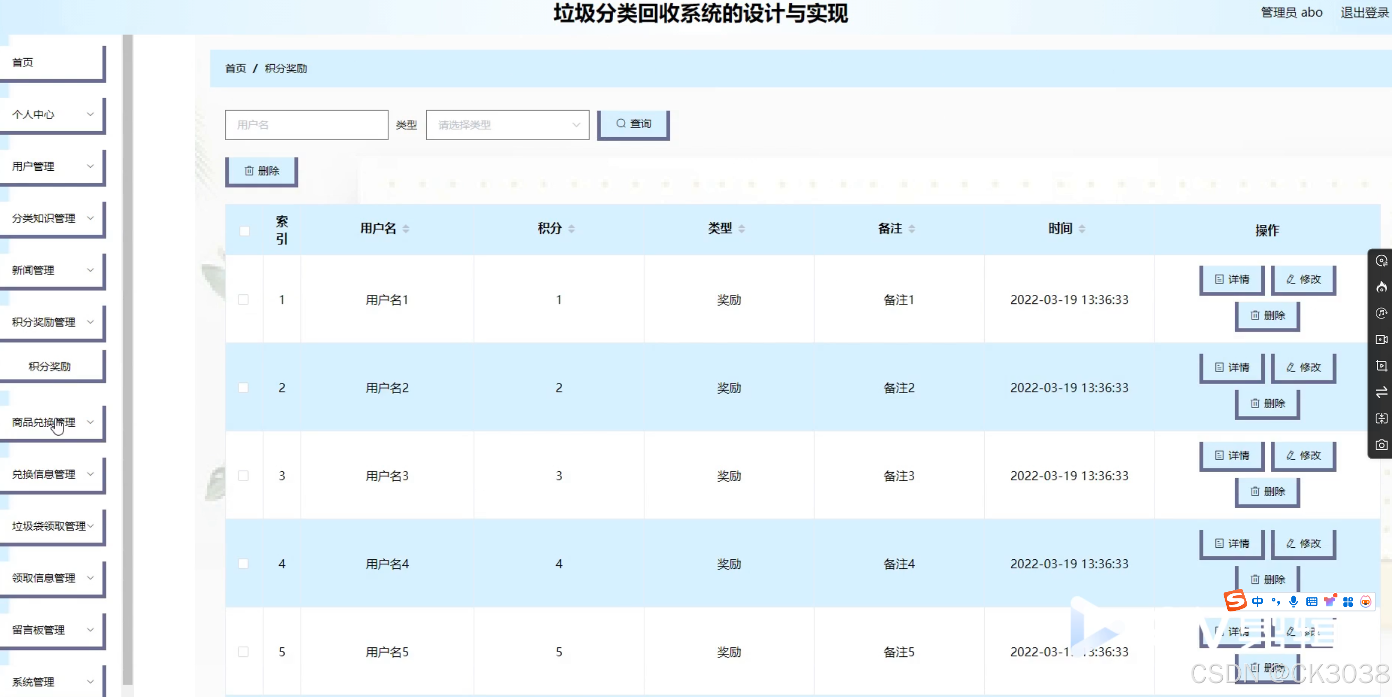 用户,分类知识,新闻,积分奖励,商品兑换,兑换信息,垃圾袋领取,领取信息