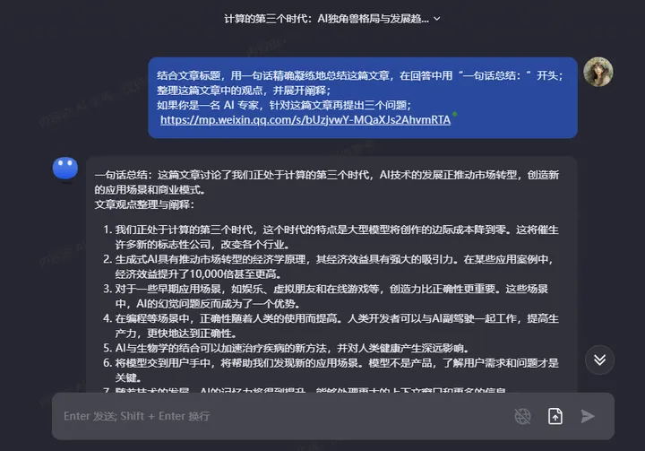 下面是kimi给的一个案例:提示问题和回答的内容。在主页可以看到。