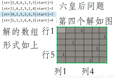 它的含义是表示数组的第一个元素为棋盘上第一列的皇后的情况,数组中元素的数值表示皇后所在的行。