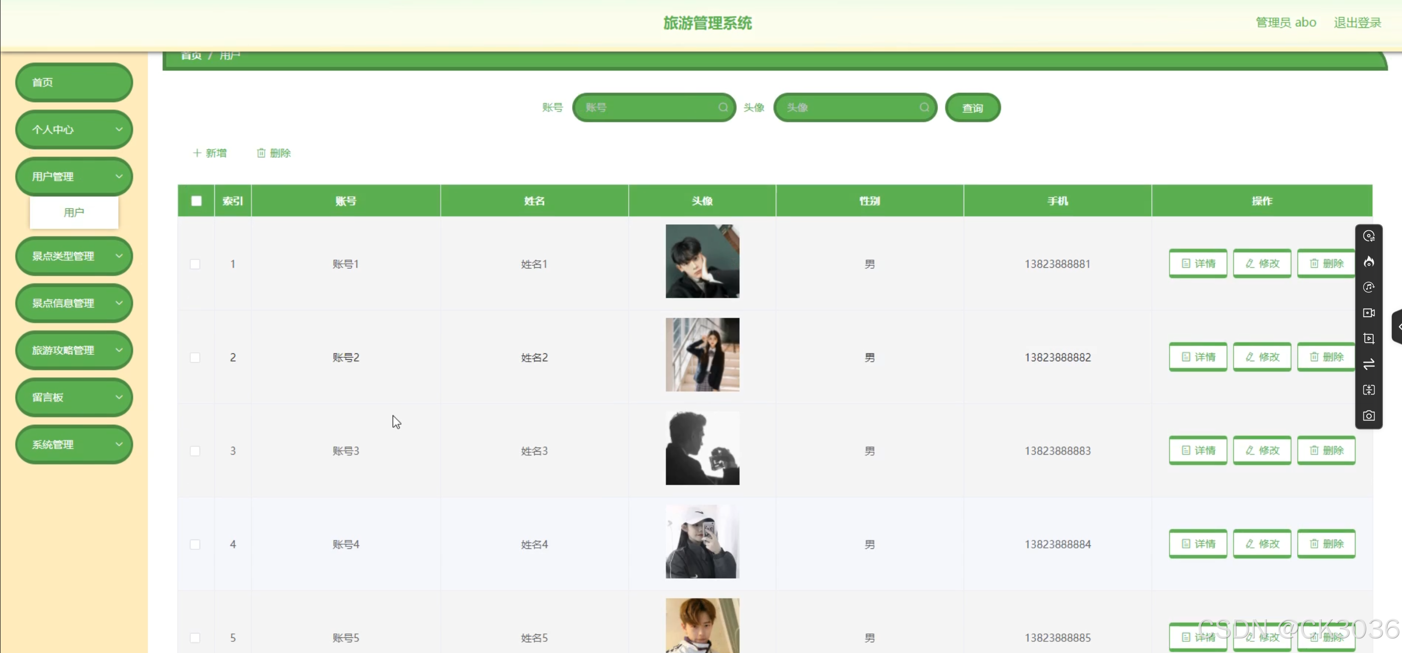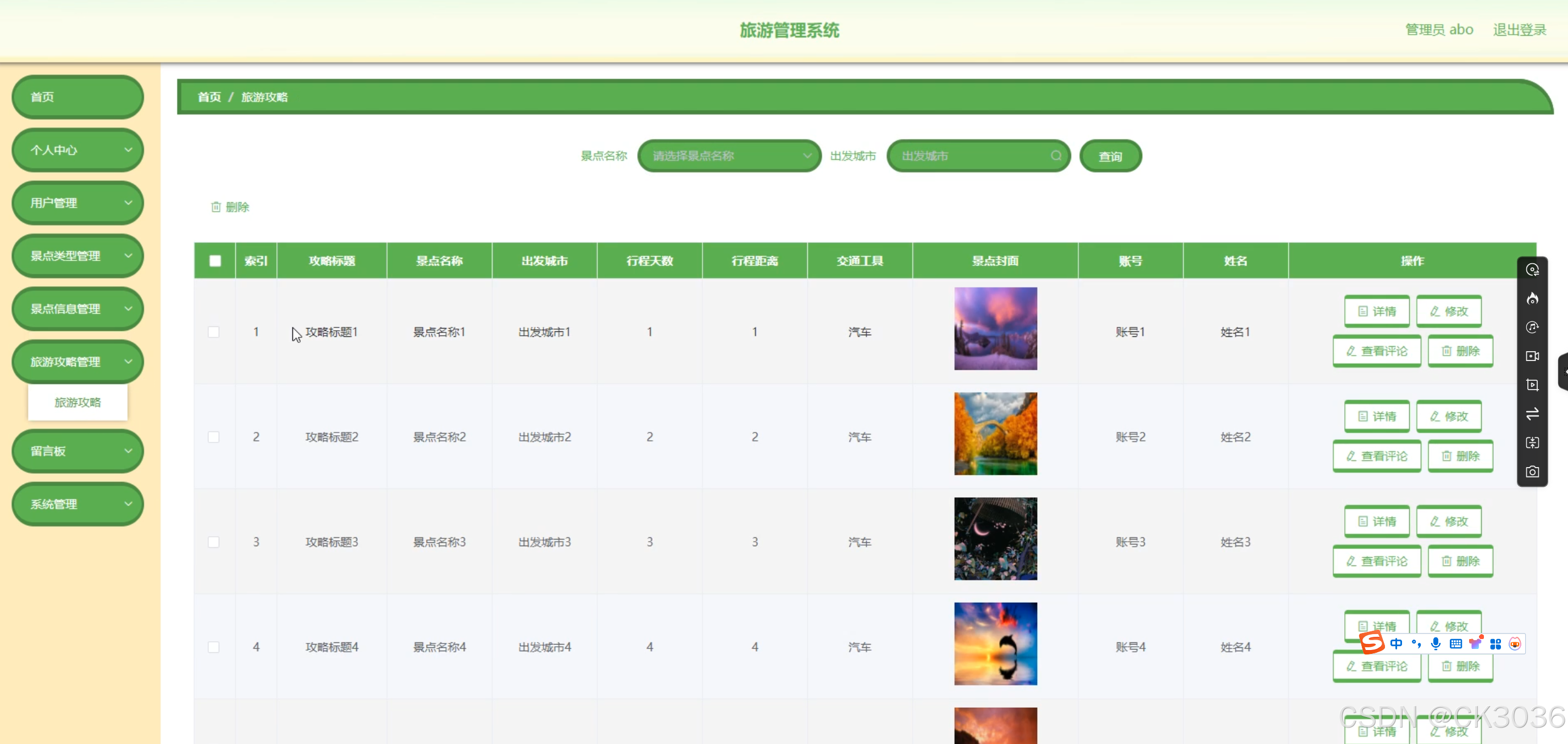 - 用户管理:实现游客注册、登录、个人信息管理等功能,为游客提供个性化的服务体验。