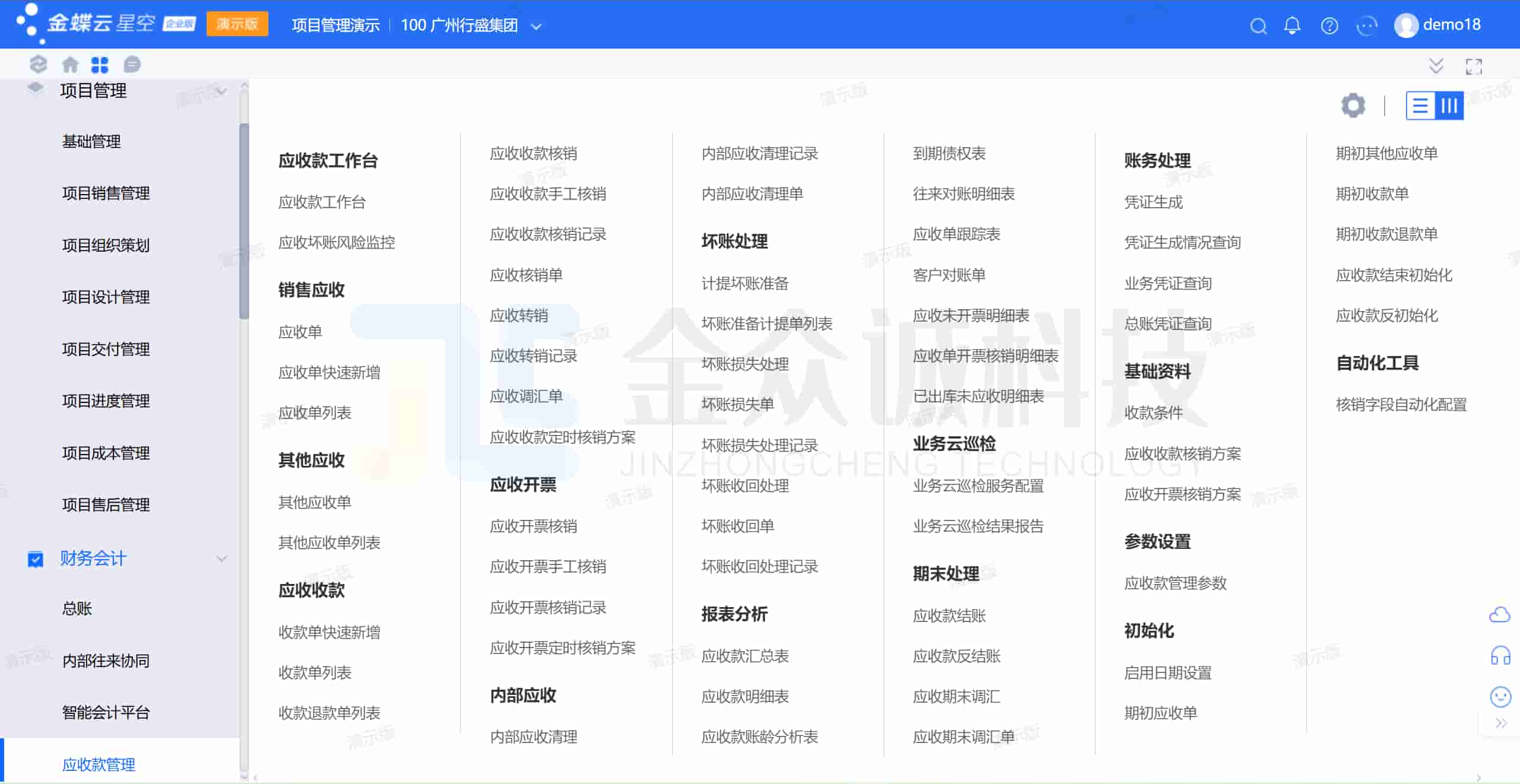 传统项目管理中,业务与财务往往是“两张皮”:业务部门关注进度与交付,财务部门关注核算与报表,两者之间缺乏有效联动。而金众诚系统通过“业务—会计—财务”三位一体的架构设计,实现了真正的业财融合。