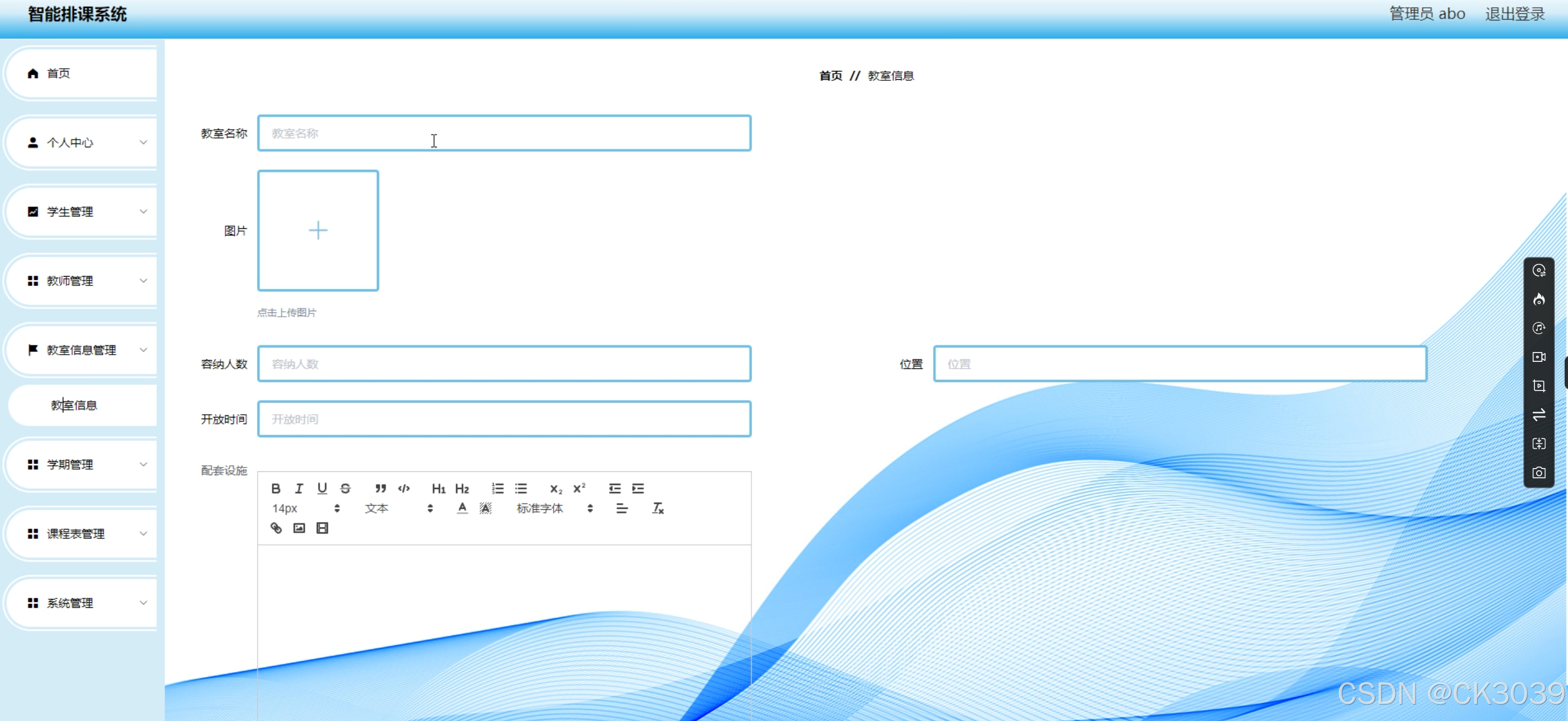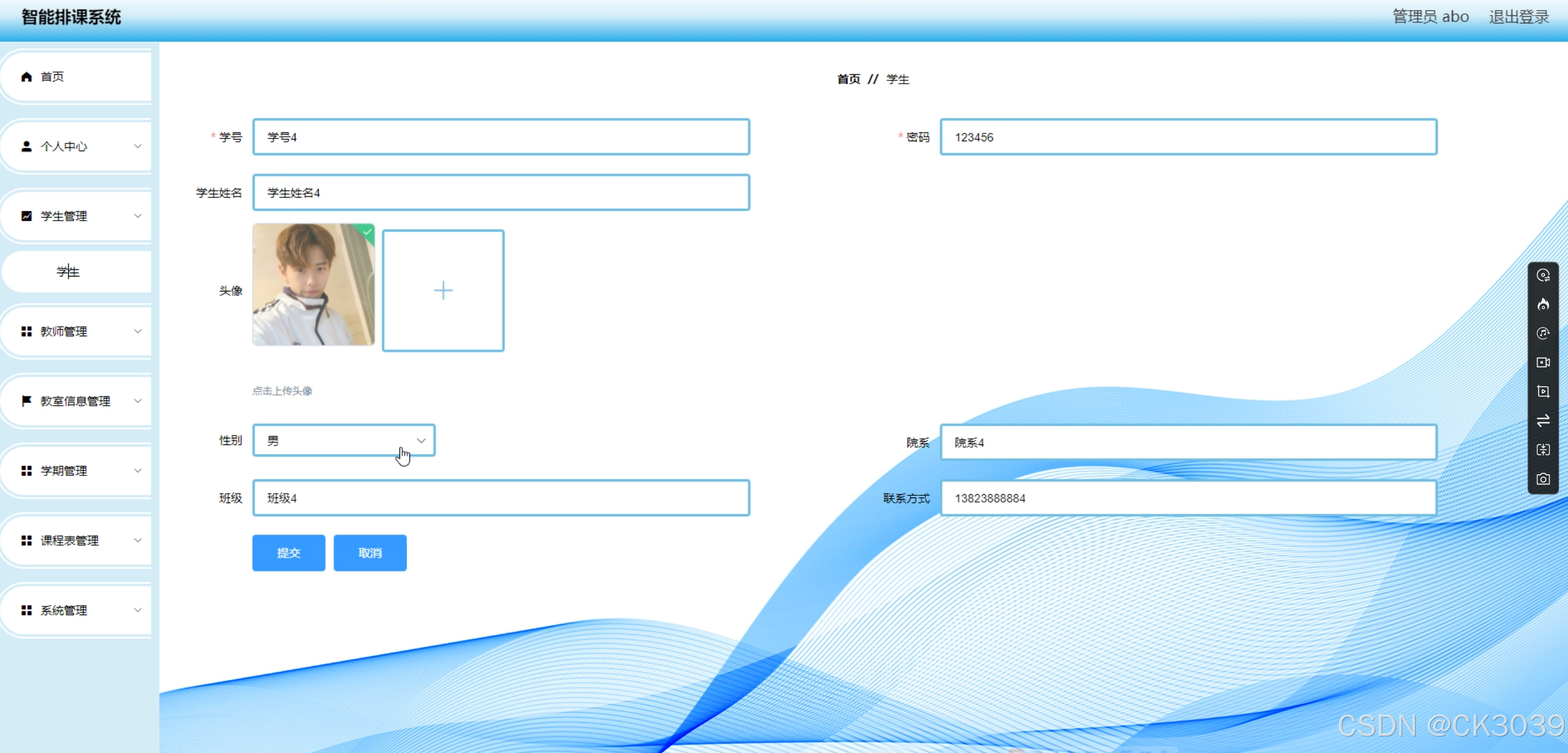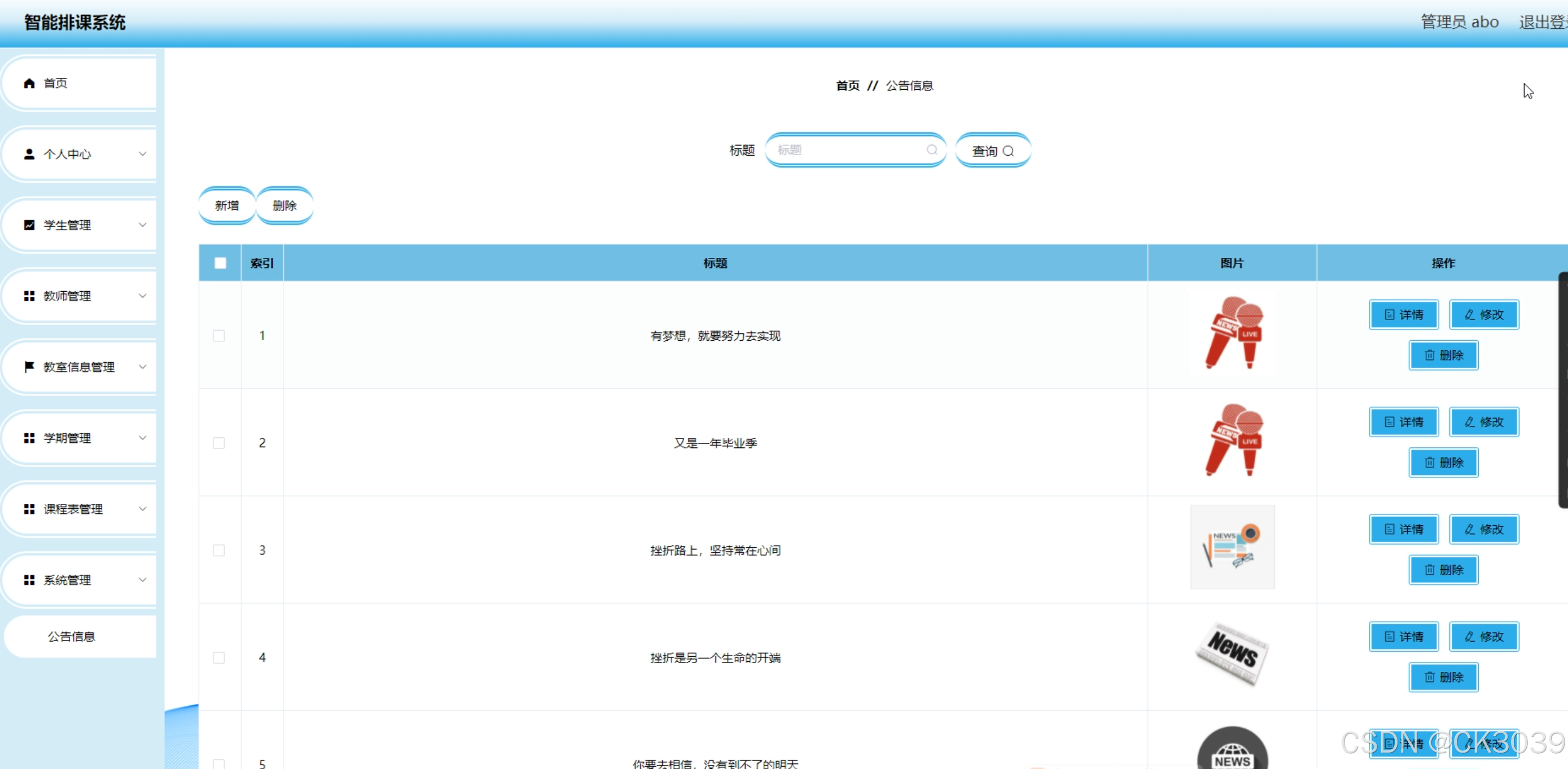 - 学期信息管理:包括学期开始时间、结束时间、假期安排等,以便系统能够根据学期的时间表进行排课安排。