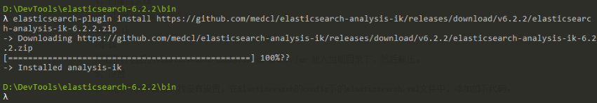 安装中文分词插件,在elasticsearch-6.2.2\bin目录下执行以下命令: