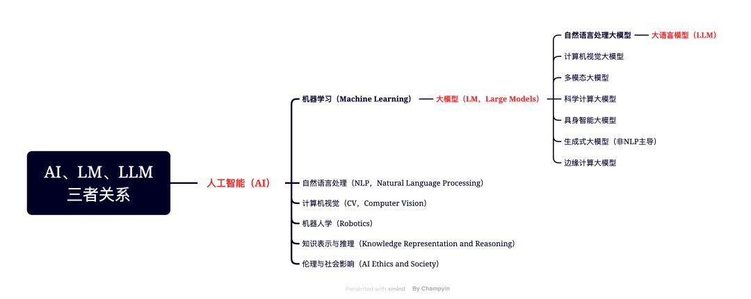 我在探索 AI 过程中强烈意识到,要想应用好大模型技术,必须先从底层全面了解它是什么,怎么来的,背后依赖哪些技术,能做什么,不能做什么,当前主流大模型产品在 AI 应用领域处于什么位置。否则只会在层出不穷的大模型产品中迷失方向,沦为行业“韭菜”。于是花了一些时间翻查资料,整理后有了本文。本文可以帮助你了解到底什么是大语言模型,什么是大模型,什么是 AI,它们之间到底是什么关系,人工智能到底在研究什么,AI 背后依赖哪些技术,了解这些有助于你厘清概念、消除误解、和警惕幻觉,进一步戳破认知泡沫、有的放矢地去探索大模型应用的边界、更好地应用好大模型工具去创造价值。