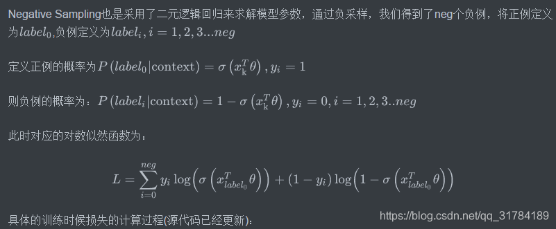 之后会使用梯度上升的方法进行梯度计算和参数更新,仅仅每次只用一波样本(一个正例和neg个反例)更新梯度,来进行迭代更新