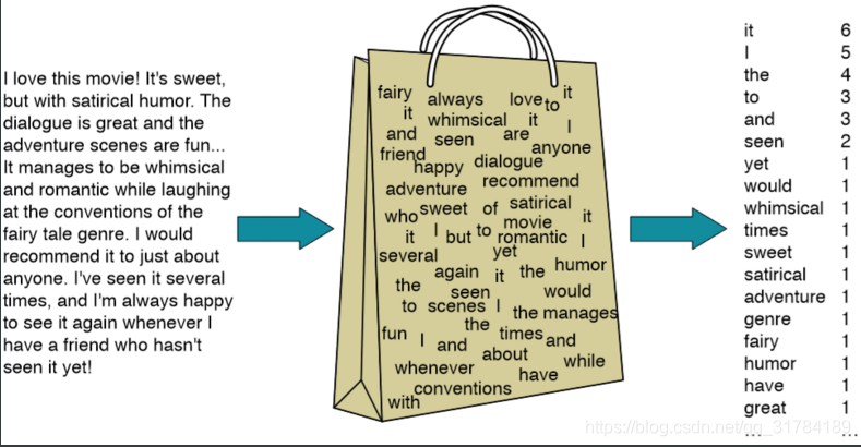 bag of word 又称为bow,称为词袋。是一种只统计词频的手段。