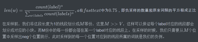 如果所有的label为,那么我们就将一段长度为1的线段分成份,每份对应所有label中的一类label。当然每个词对应的线段长度是不一样的,高频label对应的线段长,低频label对应的线段短。每个label的线段长度由下式决定: