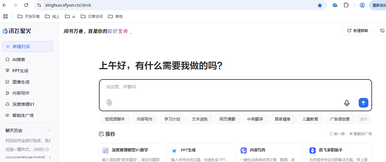 第一步,进入讯飞星火。打开google浏览器,输入百度地址后,搜索”讯飞星火”,在搜索的结果中,点第一个讯飞星火,进入讯飞星火官网,点首页中的“开始对话”,如果没有使用过讯飞星火,需要用手机号和手机验证码登录一下。