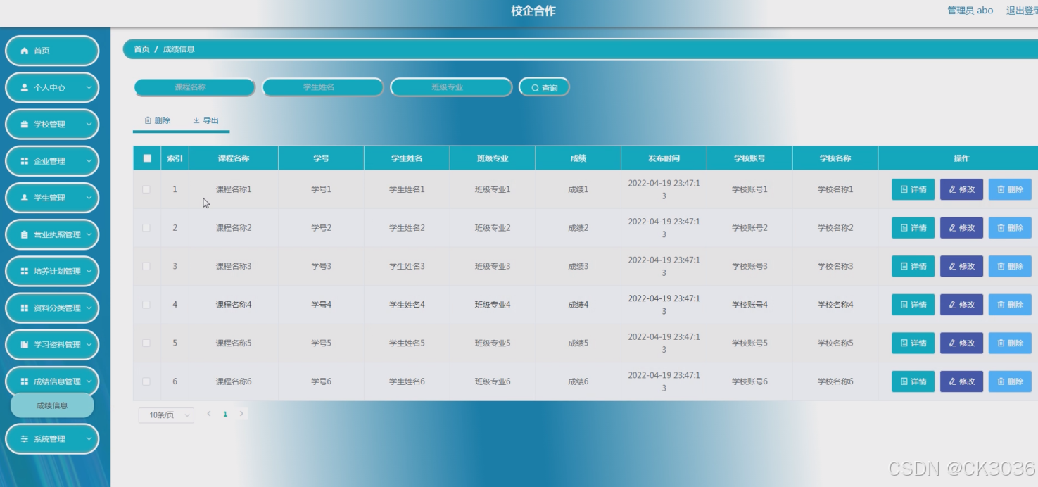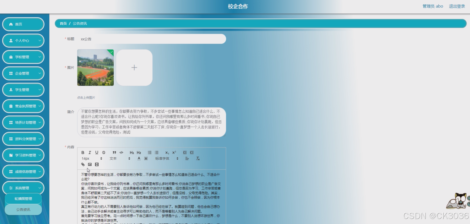 - 数据统计:对校企合作的数据进行统计和分析,为双方提供决策支持。
