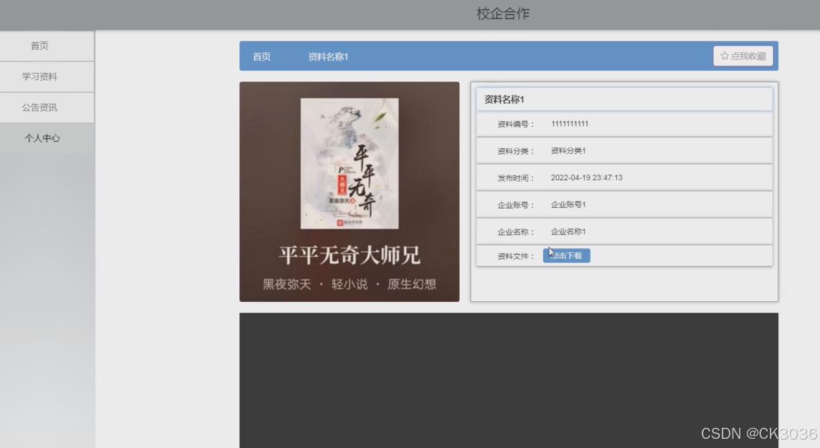 - 项目发布:企业可以在系统上发布合作项目信息,包括项目需求、合作方式等;