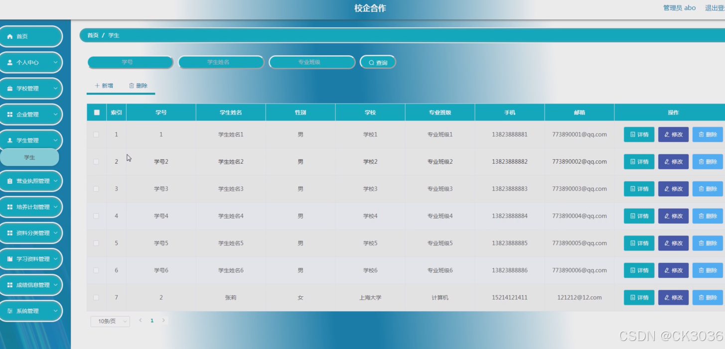- 用户管理:包括高校管理员、企业用户和学生用户的信息录入、查询和管理;