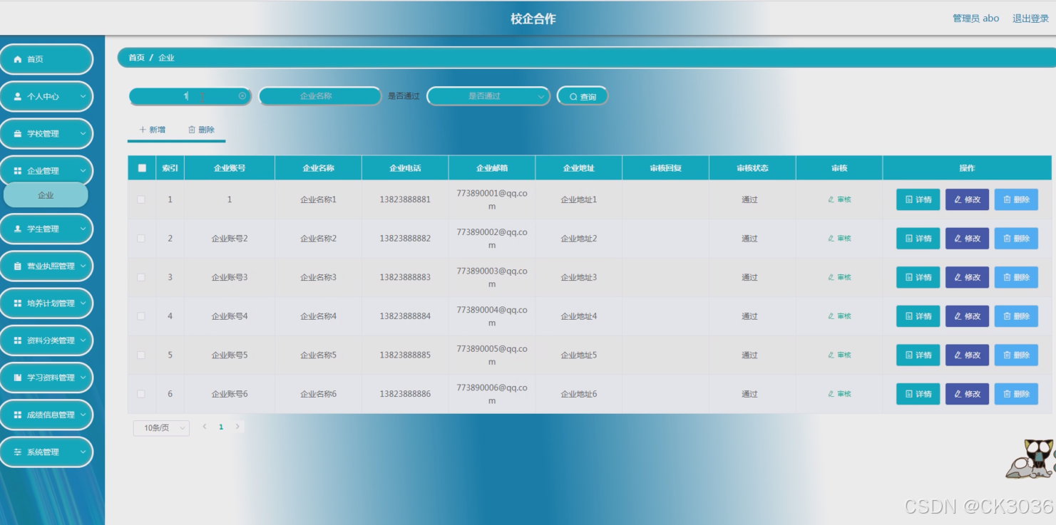 本研究旨在设计和开发一个基于Springboot的校企合作管理系统,以解决传统校企合作方式中存在的问题。通过系统的建立,我们期望实现以下目标: