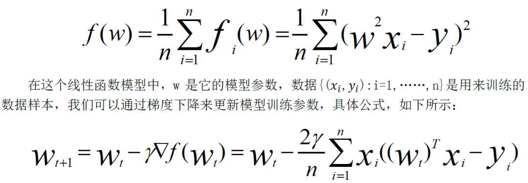 (2)参数服务器,接收到某个计算节点的参数,更新它的参数公式,如下所示: