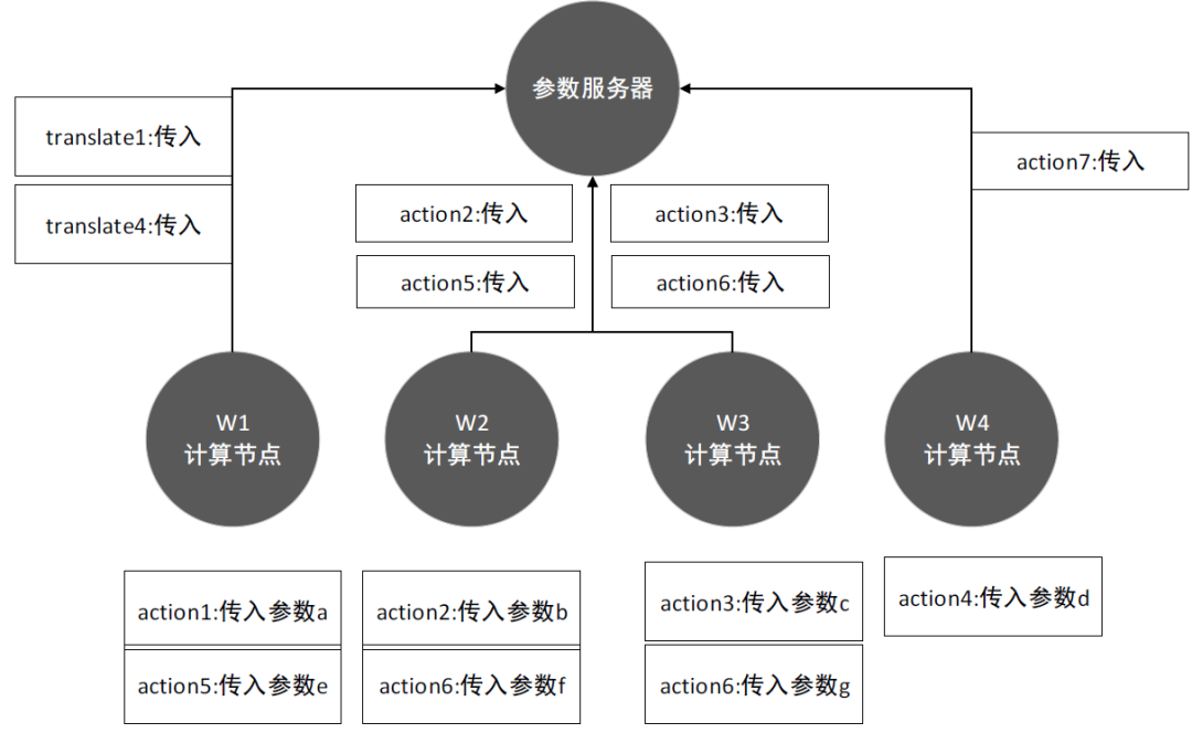 (2)发送权重参数给参数服务器,参数服务器接收本地参数后,使用本地参数,更新全局参数。