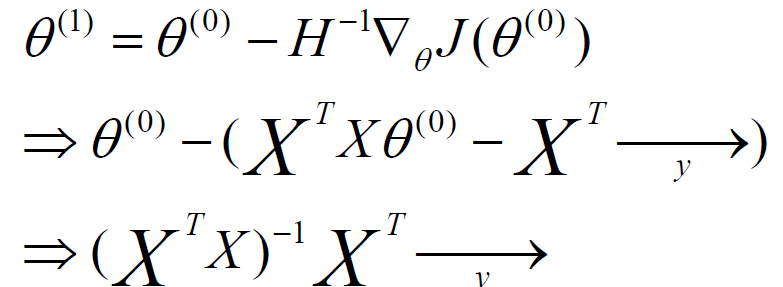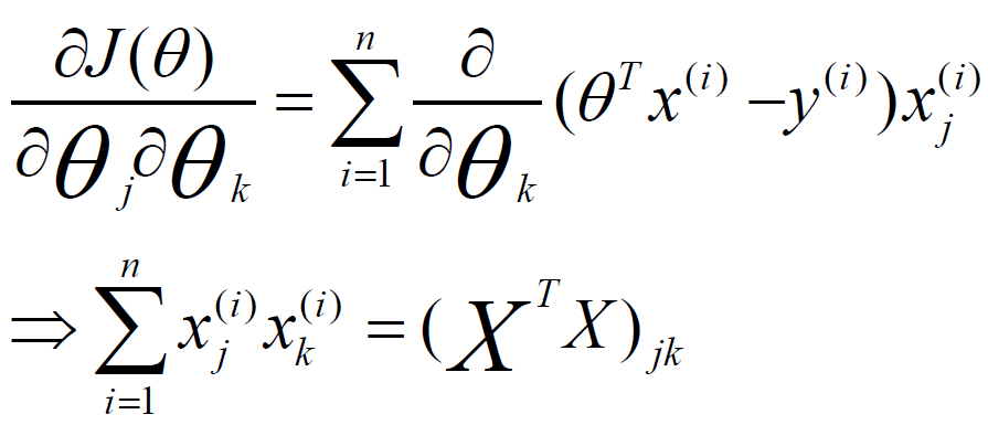 其中H就是二阶导数的简化,它被称为hessian矩阵,J函数表示对参数的一阶求导,大写的X和y表示矩阵,这就是牛顿法应用在最优参数求解的应用。