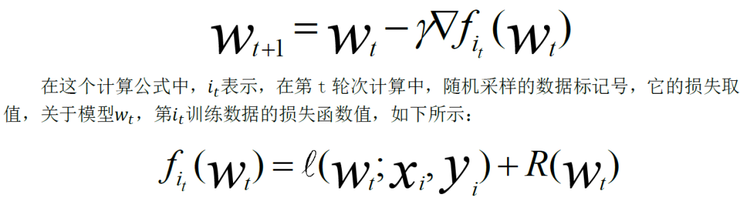 最常用的单体优化算法,是随机梯度下降算法SGD。它采用对数据样本,进行随机采样,它的更新公式,如下所示: