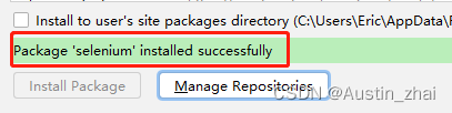 注意查看selenium的版本号,根据自己的需要进行下载。如需变更版本,在搜索完selenium关键字之后勾选下方的Specify version,选择需要的版本进行安装。